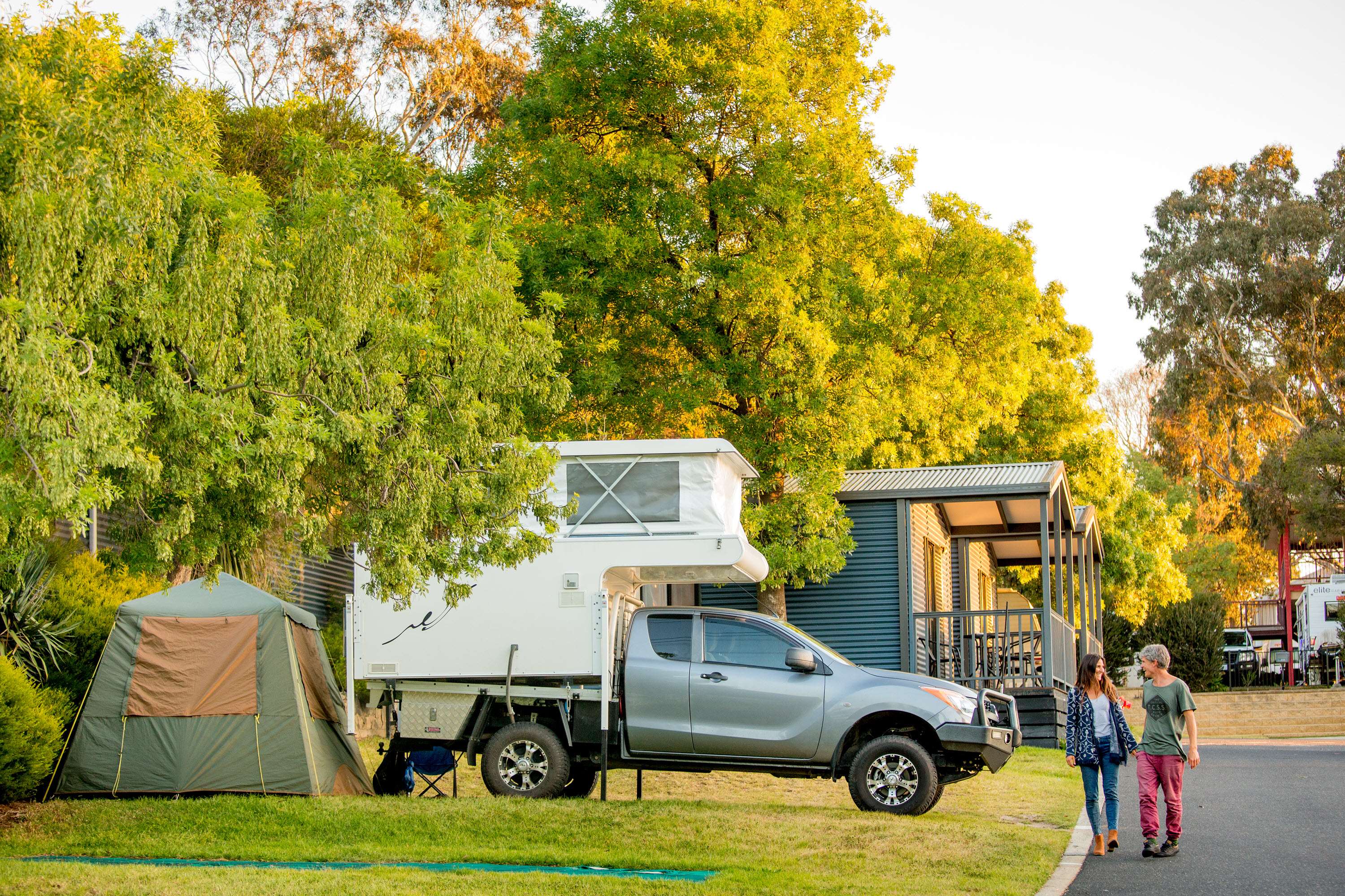 We have sites suitable to most travellers needs, catering for caravans, motorhomes, campers and tents. Set amongst landscaped gardens, our sites are available on open lawn, in shaded camping areas or on hard-standing slabs, which conveniently surround our central well equipped heated amenities building, camp kitchens, family and children's bathroom and fully automatic laundromat.