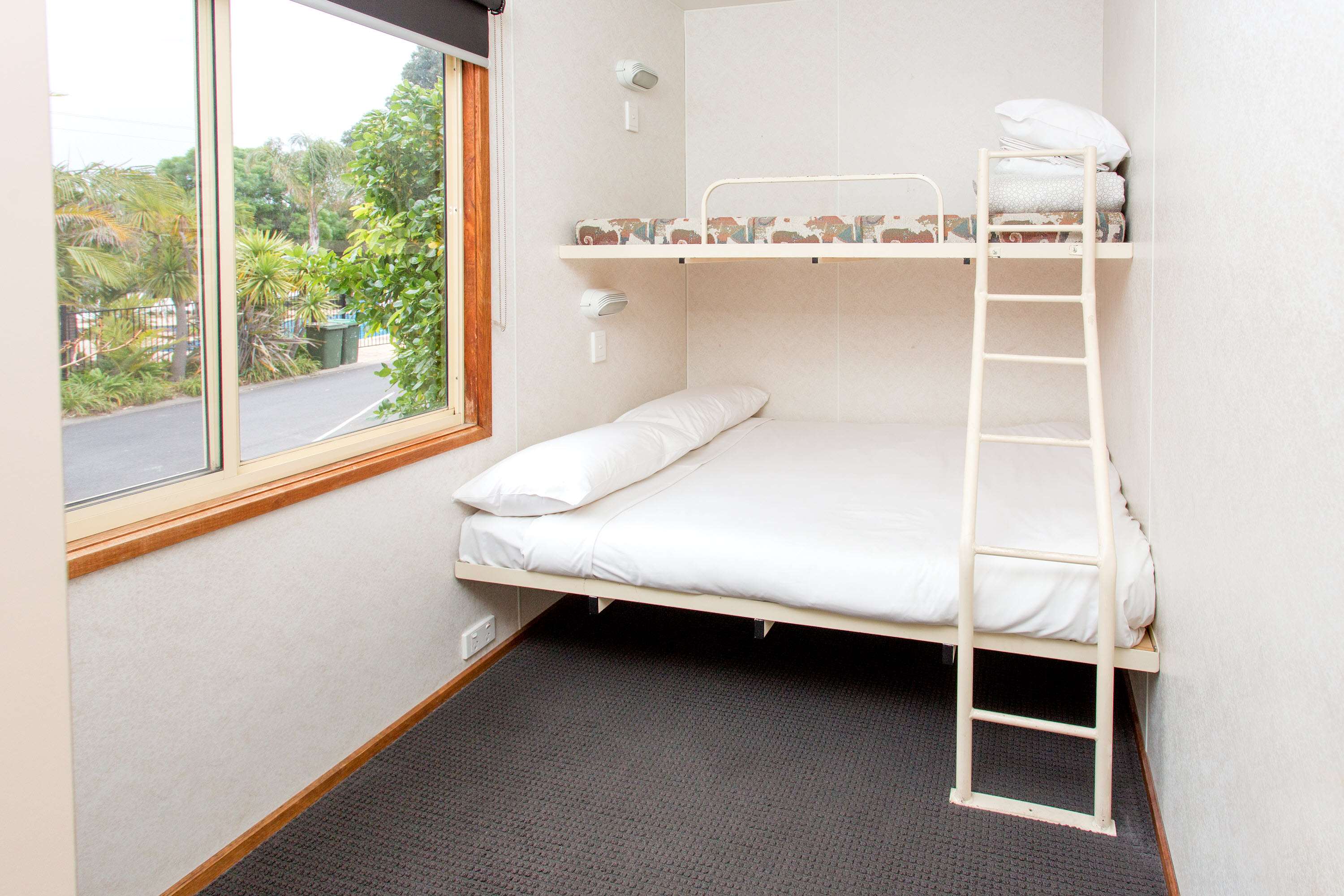 A beautifully designed cabin ideally suited to the family that sleeps up to five. Consisting of two bedrooms separate to the main living/dining area, this cabin allows privacy, space and comfort for the whole family. The main bedroom has a queen bed and the second bedroom has double bed with a single top bunk bed. All bedding and towels are supplied. The cabin offers kitchen with a microwave, fridge, crockery, cutlery, pots, pans, kettle and toaster, heating, air-conditioning, two televisions, and free in-house movies. The bathroom has a shower, toilet, hair dryer, ironing board and iron.