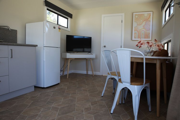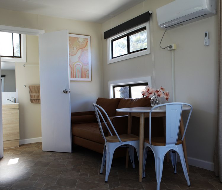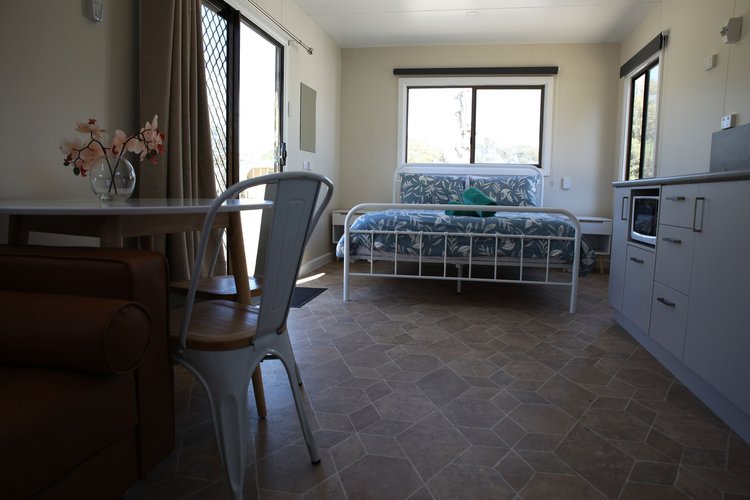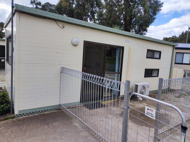 Our Reedy Cabins are our only pet friendly cabins and are perfect for those who travelling with their fur babies! The fenced entrance area allows your pet to entertain themselves and explore their home away from home. The cabin hosts an open plan living with a queen bed, kitchenette, bathroom and air-conditioning.