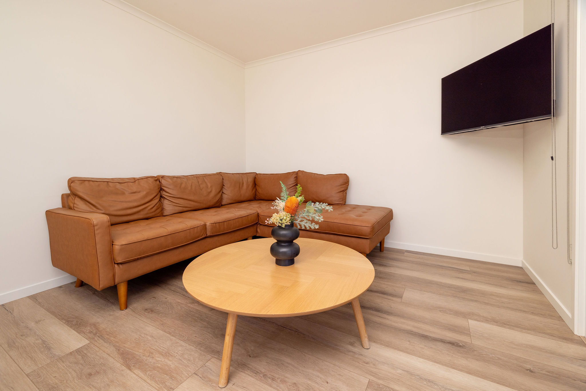 The main bedroom boasts a generous king bed and TV. The second bedroom contains a queen bed and TV.
