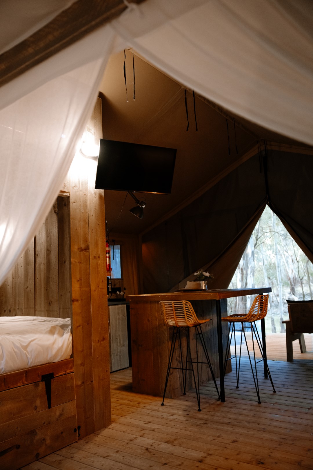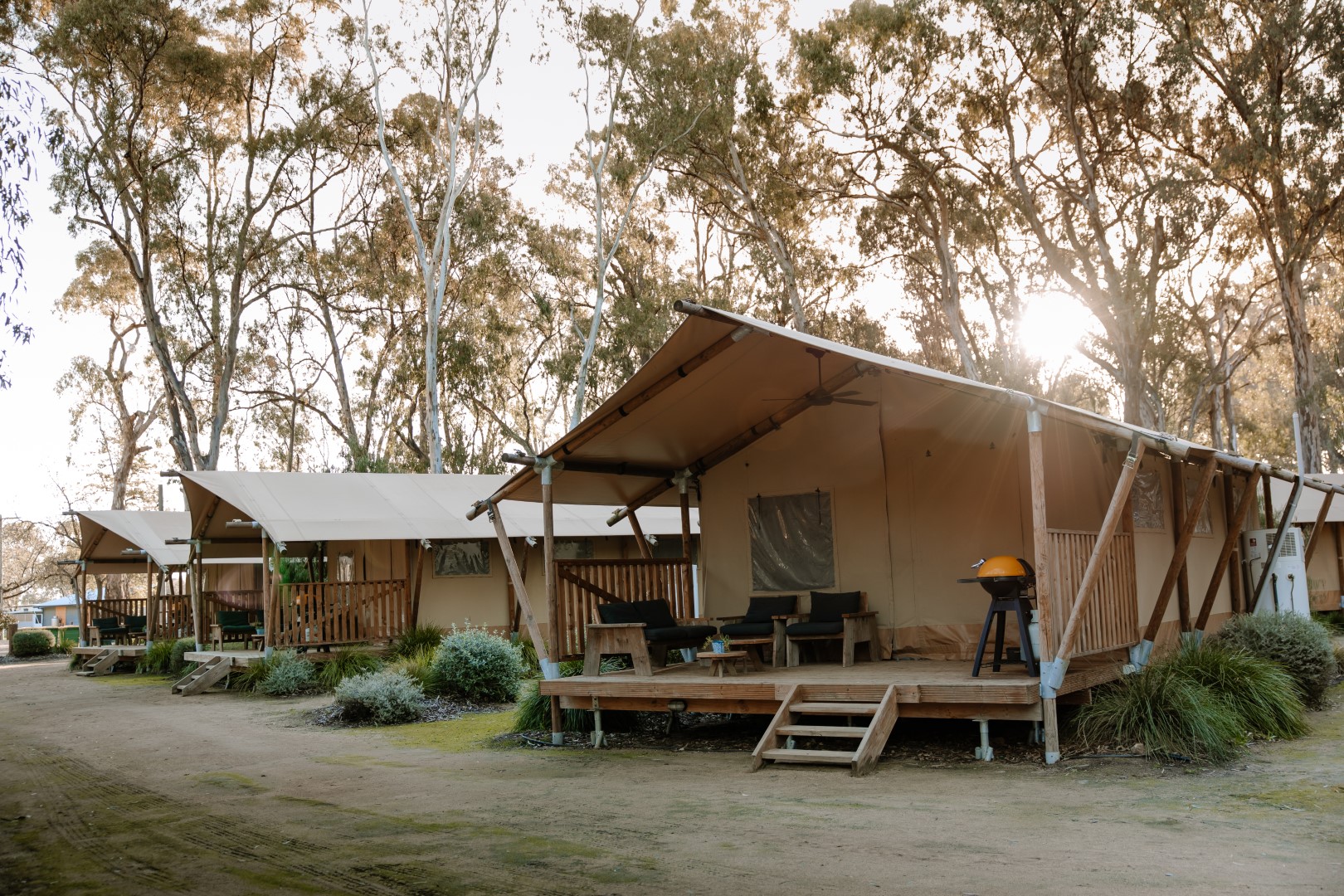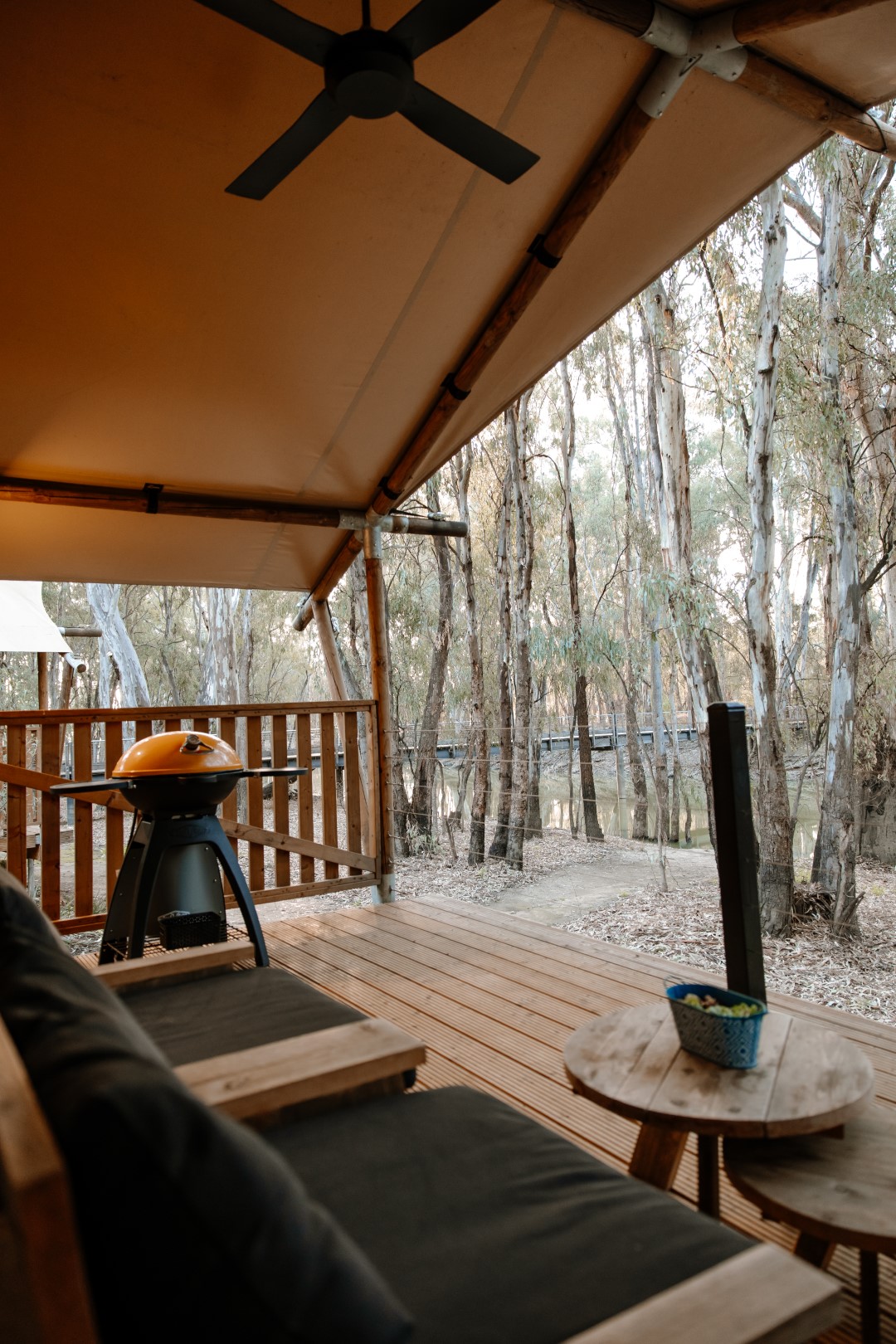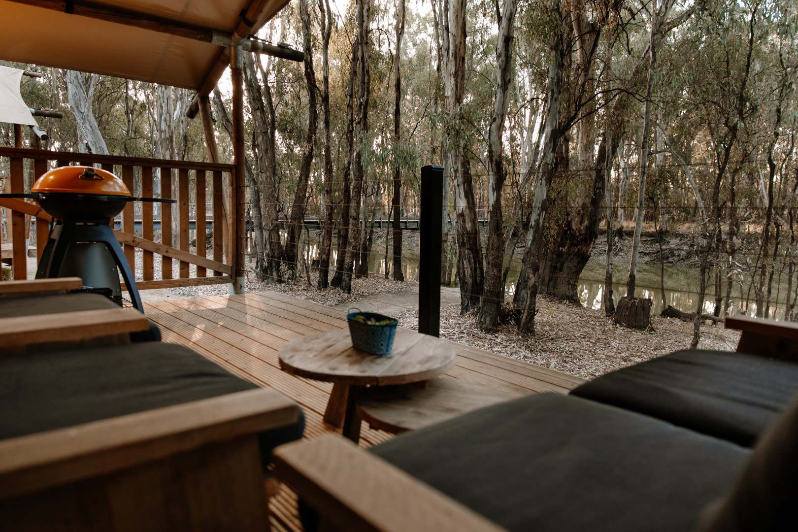 Koondrook Glamping Retreat beckons you to experience its exquisite luxury self-contained glamping tents, thoughtfully designed to accommodate groups of up to four. Each tent offers a perfect blend of comfort and nature, featuring plush beds, modern amenities, and a private outdoor area. Nestled in the serene surroundings of Koondrook, you'll enjoy the tranquility of the great outdoors without sacrificing the comforts of home. Ideally set on the banks of the iconic Murray River in northern Victoria, Koondrook is a serene and picturesque destination. Ideal for a peaceful escape, it offers stunning river views, rich history, and abundant natural beauty. Perfect for outdoor activities like hiking, bird watching, and fishing, Koondrook is a hidden gem for those seeking tranquility and nature's splendor. Whether you're planning a family getaway or a retreat with friends, Koondrook Glamping Retreat promises an unforgettable glamping experience.