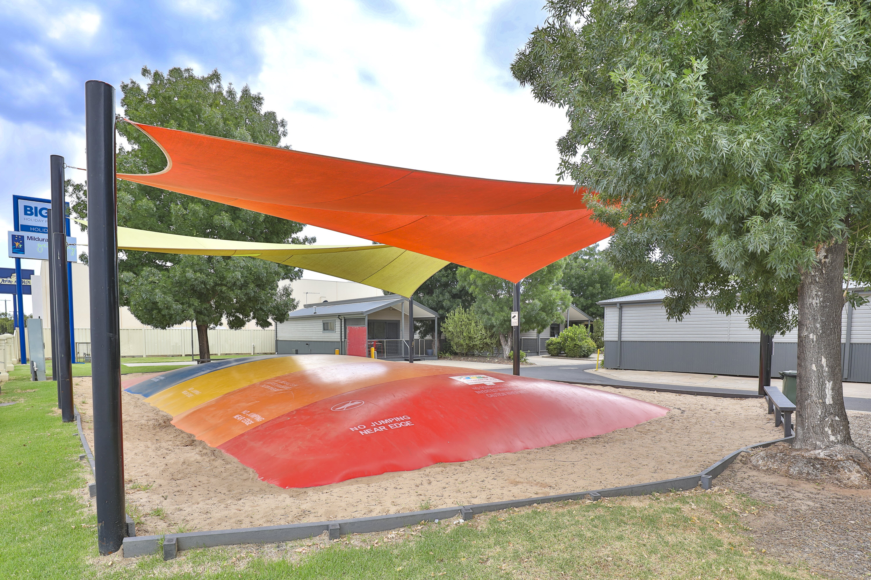 Experience the BIG4 Mildura Getaway difference! Our award-winning, family-owned park is a short stroll to a main shopping centre and eateries and just a short drive to the picturesque heart of the town and the majestic Murray River with its lovely waterfront parks and gardens. We are the perfect base for your next stay in Mildura, with excellent park facilities including indoor and outdoor camp kitchens, free BBQs, laundry, jumping pillow, playgrounds, pool and a games room. We have a wide range of family-friendly accommodation to suit all budgets along with a range of ensuite, powered and large drive-through caravan sites. BIG4 Mildura Getaway is not a pet friendly Park. No Pets are Allowed. Our whole team look forward to welcoming you to our lovely holiday park!
