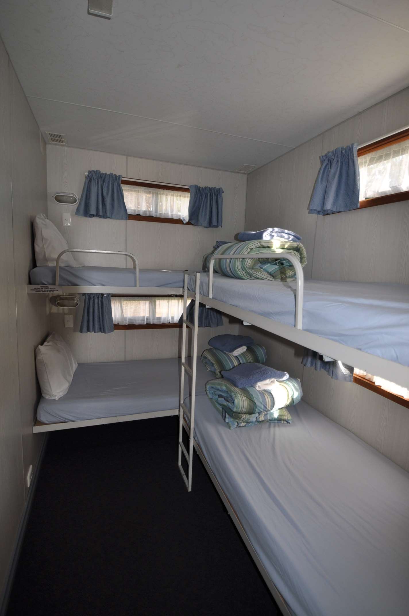 We reserve the right to refuse a booking at any time from any person reasonably believed to: • Not be the person named on the booking request • Not be the person named on the credit card or not be authorized to use the card • Not be able to pay for charges incurred • May cause damage to the property of the Park or other guests • May exhibit socially unacceptable behaviour • Be younger than 18 years and not accompanied by a responsible person over that age • Be concealing a dog that has not been approved by management • Be concealing other unauthorized animal. We reserve the right to eject guests from the park who are deemed by management to be behaving in a socially and unacceptable way; causing damage; disturbing other guests; using unacceptable language or otherwise breaking Park Rules. No refunds will be given to persons ejected. BIG4 Riverside Swan Hill reserves the right to change site and cabin allocation when necessary. No person or organisation may undertake any promotional, commercial, or marketing activities in the park without the express written permission of the owner. Australian Standards relating to the use of bunk beds state “Children under the age of 9 years are not permitted to use the top bunk. Children must not play on the top bunk.” Please take this into consideration when making your booking.