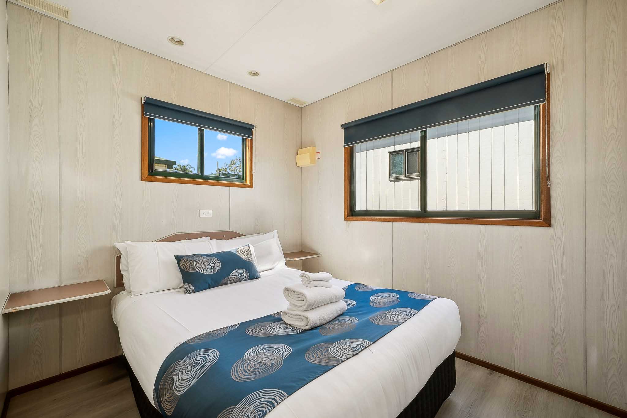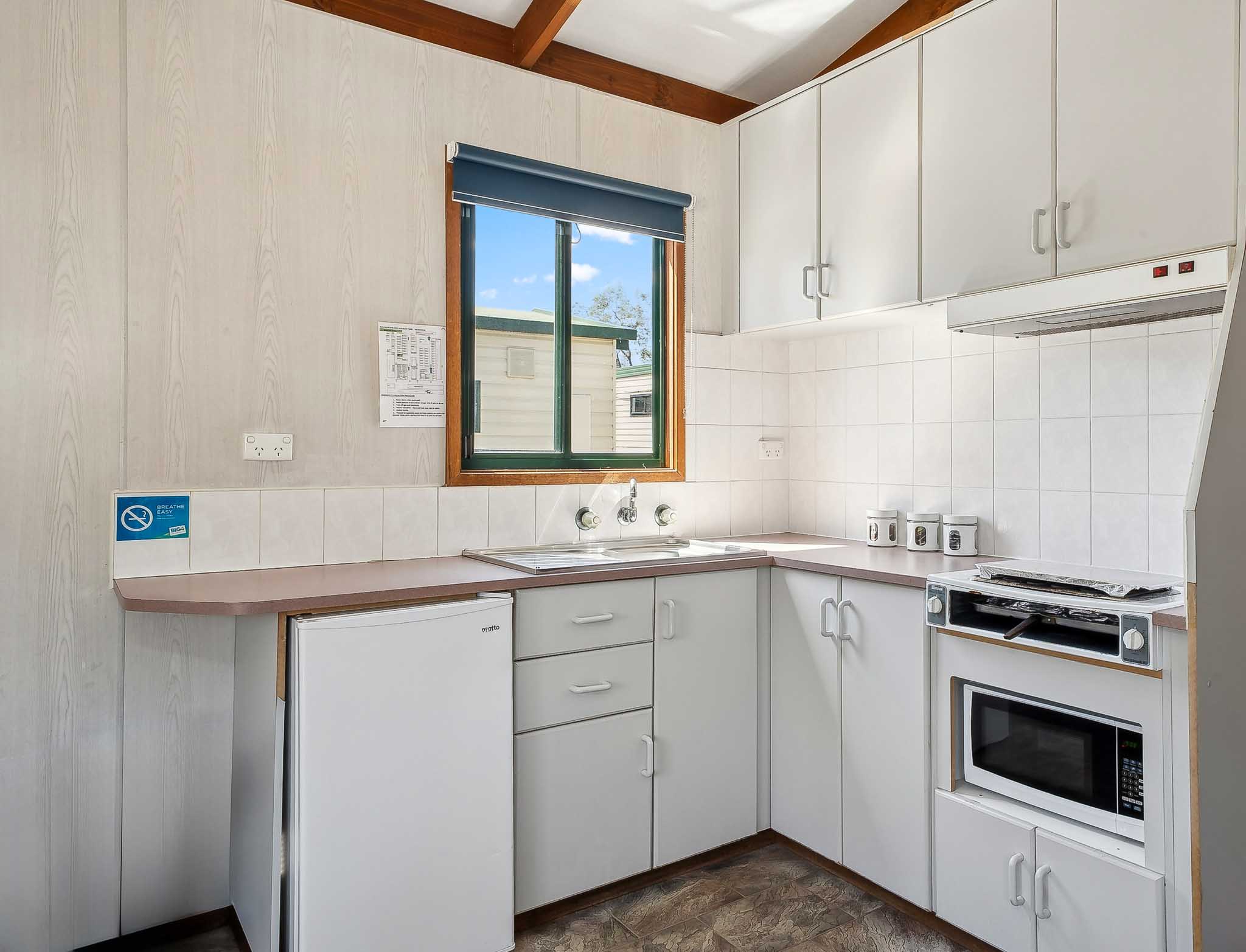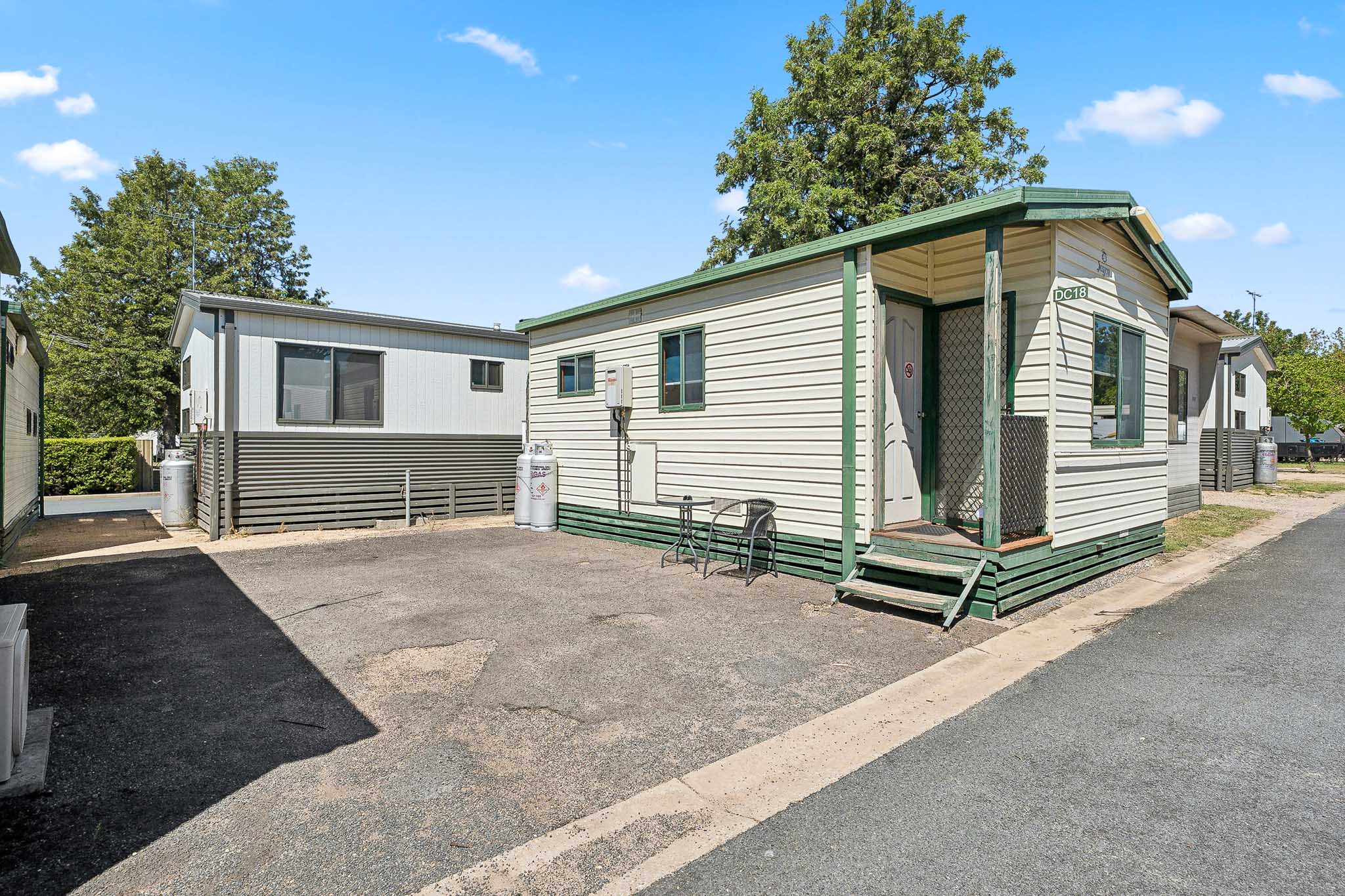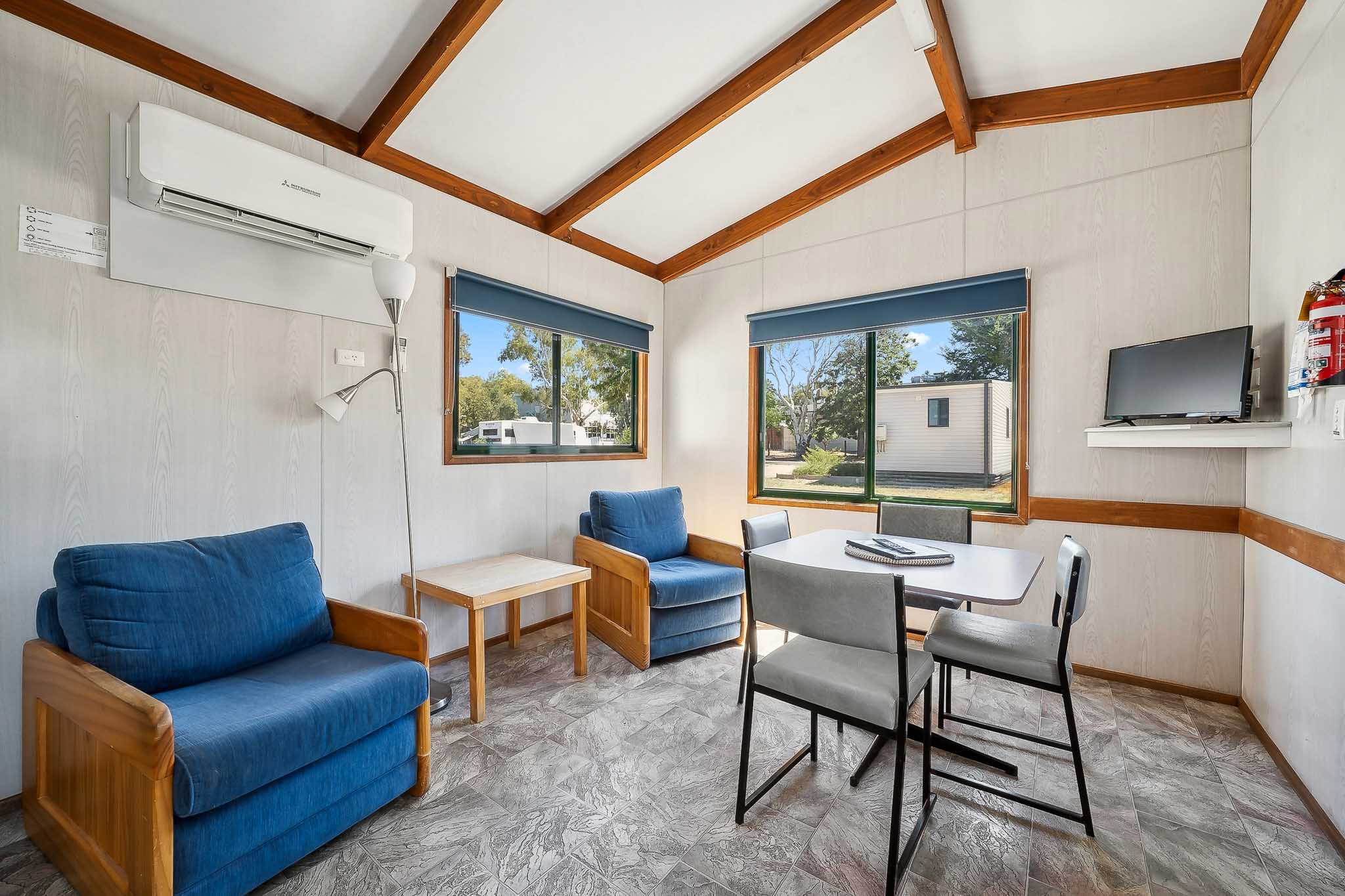 Comfortable, one-bedroom units, ideal for couples. Two-way bathroom. Cabin has heating and air conditioning. Kitchen with a cook top/grill and microwave plus all utensils, crockery, cutlery. Kitchen has table and chairs. Lounge area has 2 comfortable armchairs and reading lamp. Unit comes with all bed linen, towels, doonas, and electric blanket for those cuddly winter nights.