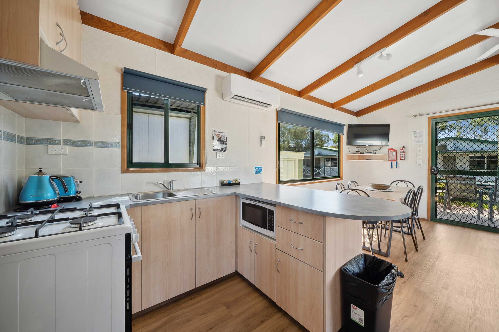 Perfect for family escapes, this two-bedroom villa sleeps up to six with a queen bed and two sets of single bunks. Enjoy a full kitchen with gas oven, stovetop, and microwave, plus a cosy living area with TV and split system air conditioning. Linen is supplied, with the main bed made on arrival—an ideal choice for a relaxed and affordable stay.