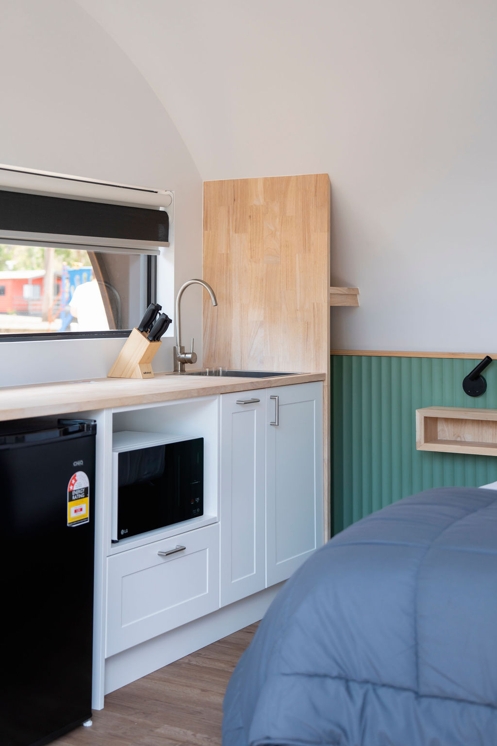 Camp comfortably with our fully furnished, hand built Mod Pods.