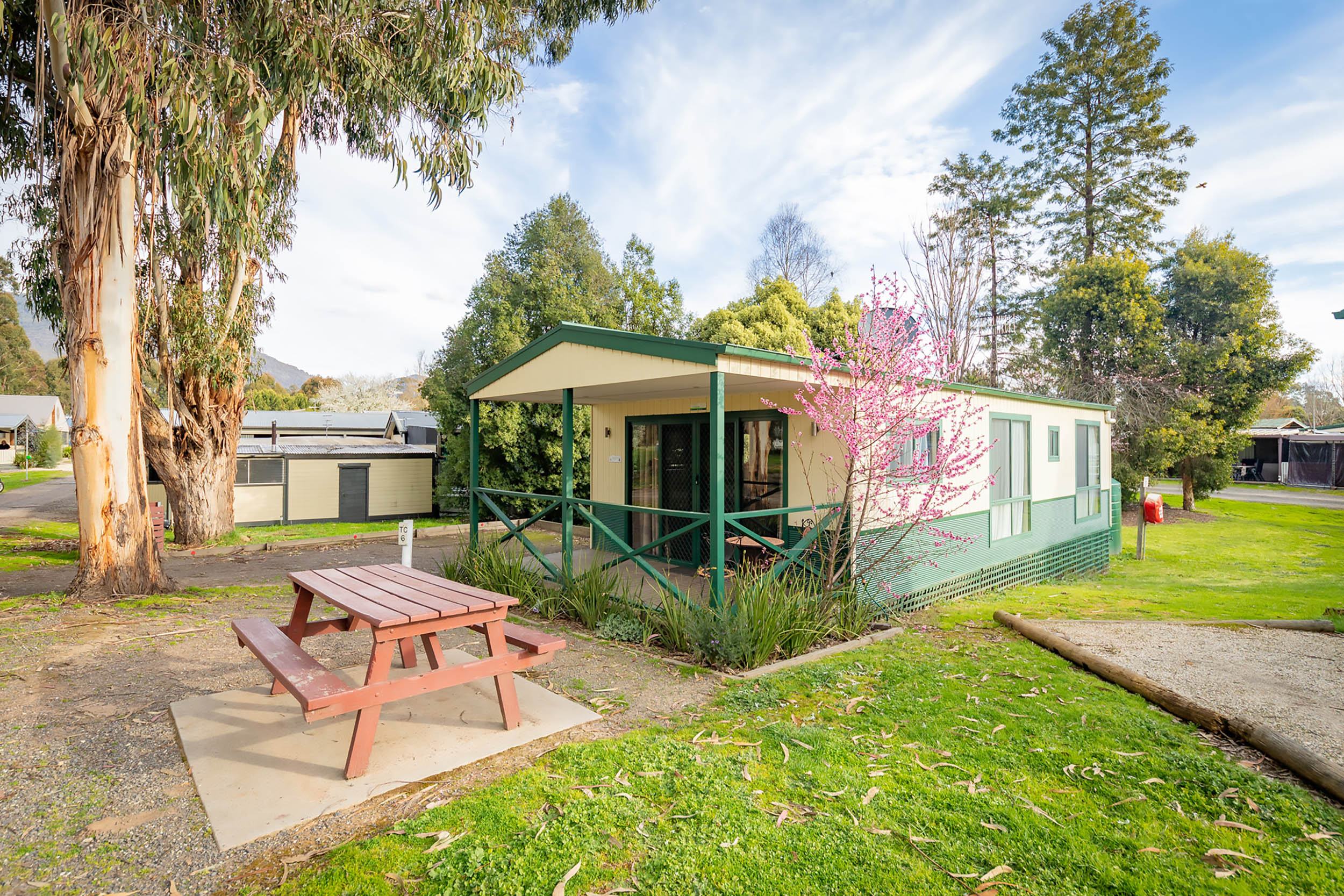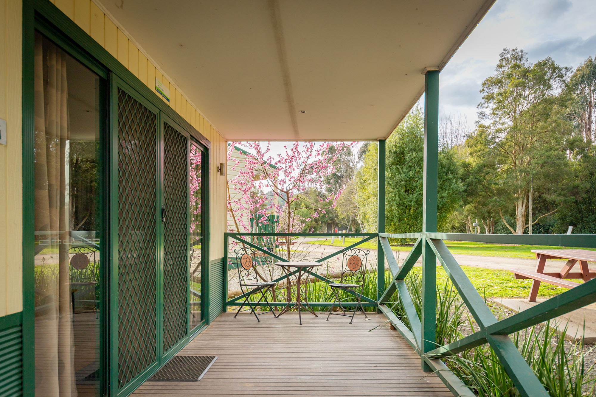 The cabin has a self-contained kitchen including fridge, microwave, stovetop and plenty of crockery and cutlery with a seperate dining area, and a TV in the living area. The bathroom in the cabin includes a shower, toilet and vanity. The cabin is air-conditioned for your comfort.