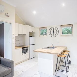 We have a range of cabin and villa options at our Bright holiday park ranging from private dorms to comfortable cabins.