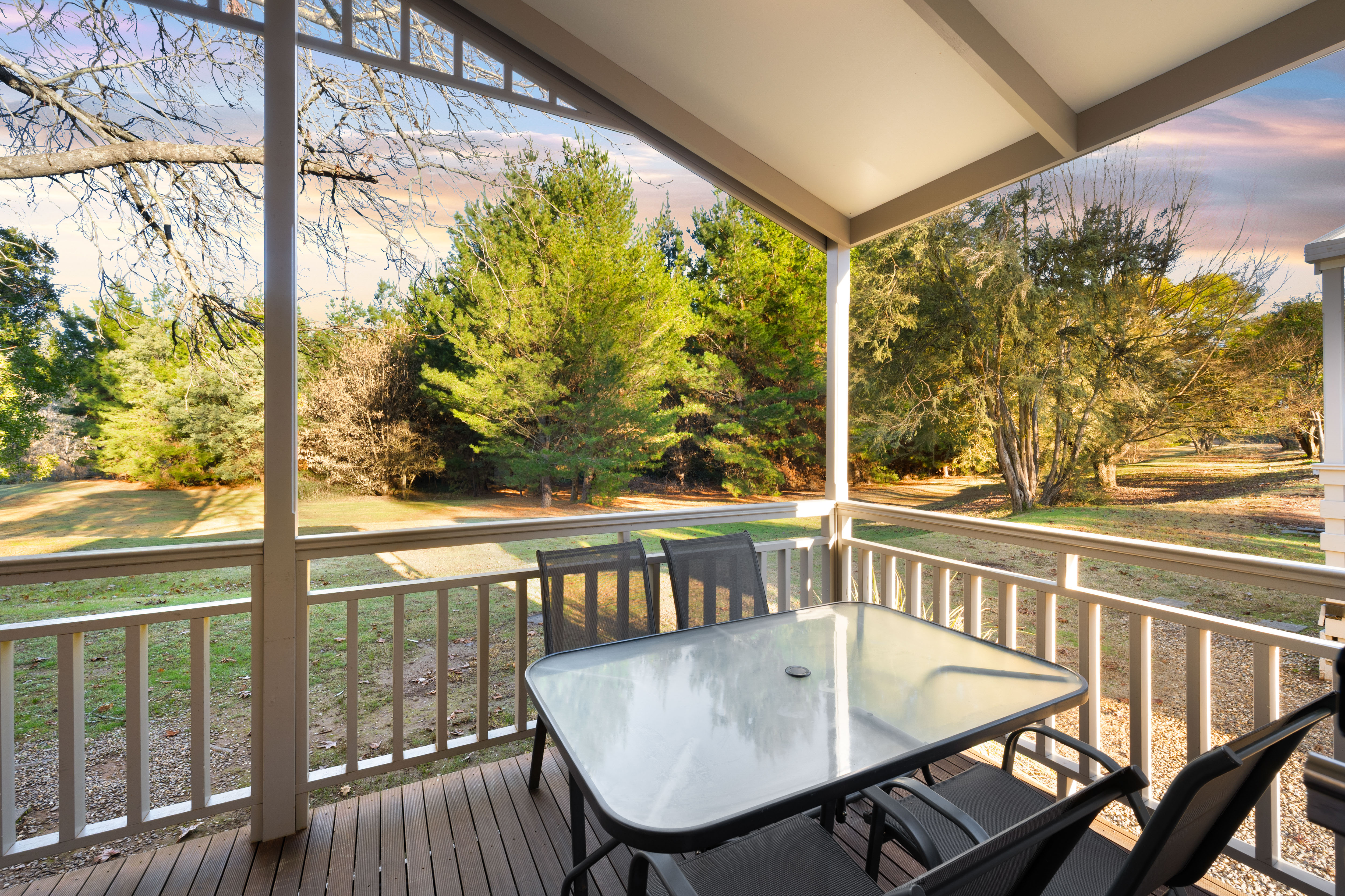 Outdoor deck with seating, perfect to take in the Mount Buffalo views.