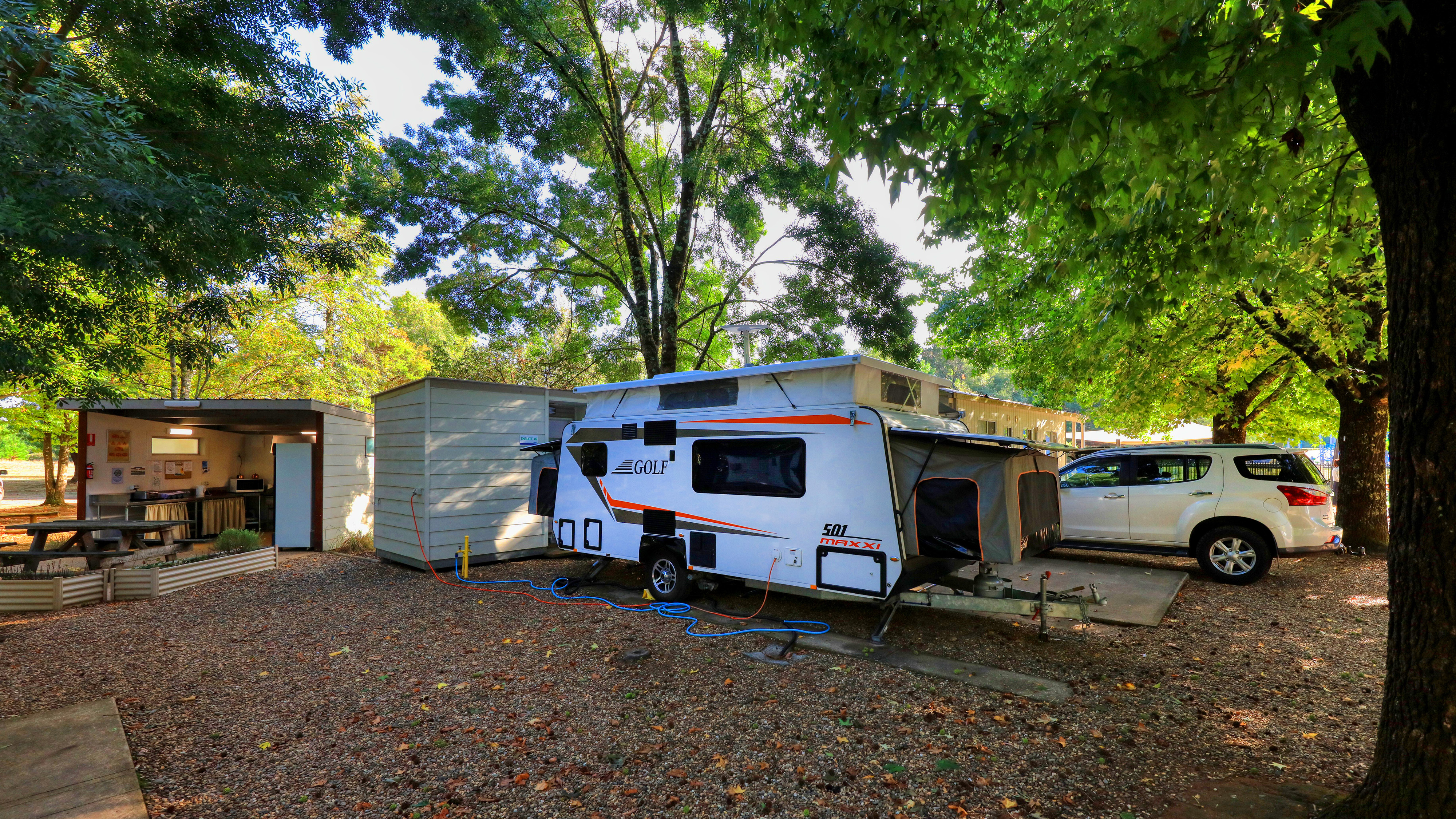 These sites are a combination of part pebble and concrete slab which are serviced by individual ensuite units. The ensuite contains a shower, vanity unit and toilet for the privacy and convenience you desire. Heater provided for those winter mornings and nights.