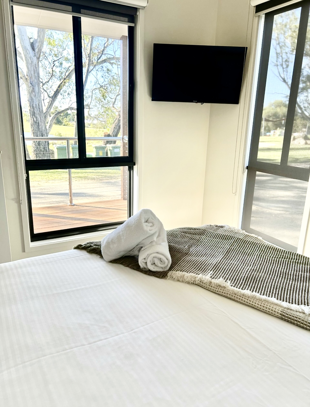 These new Deluxe Lakeview Cabins at BIG4 Rutherglen Holiday Park offer modern comfort with stunning views of the serene lake. Perfect for a relaxing getaway, each cabin is equipped with contemporary amenities, spacious living areas, and private verandas where guests can enjoy the natural beauty of the surroundings. Ideal for couples or families, these cabins provide a tranquil retreat with easy access to local attractions and the park's facilities.