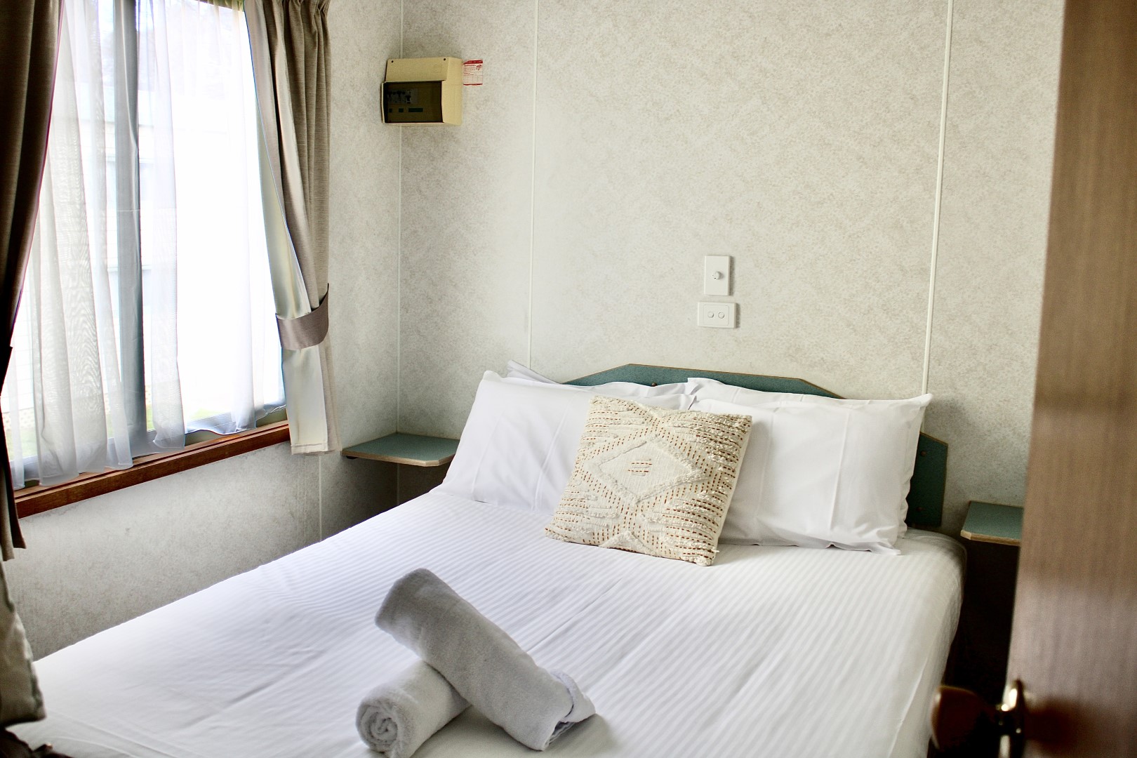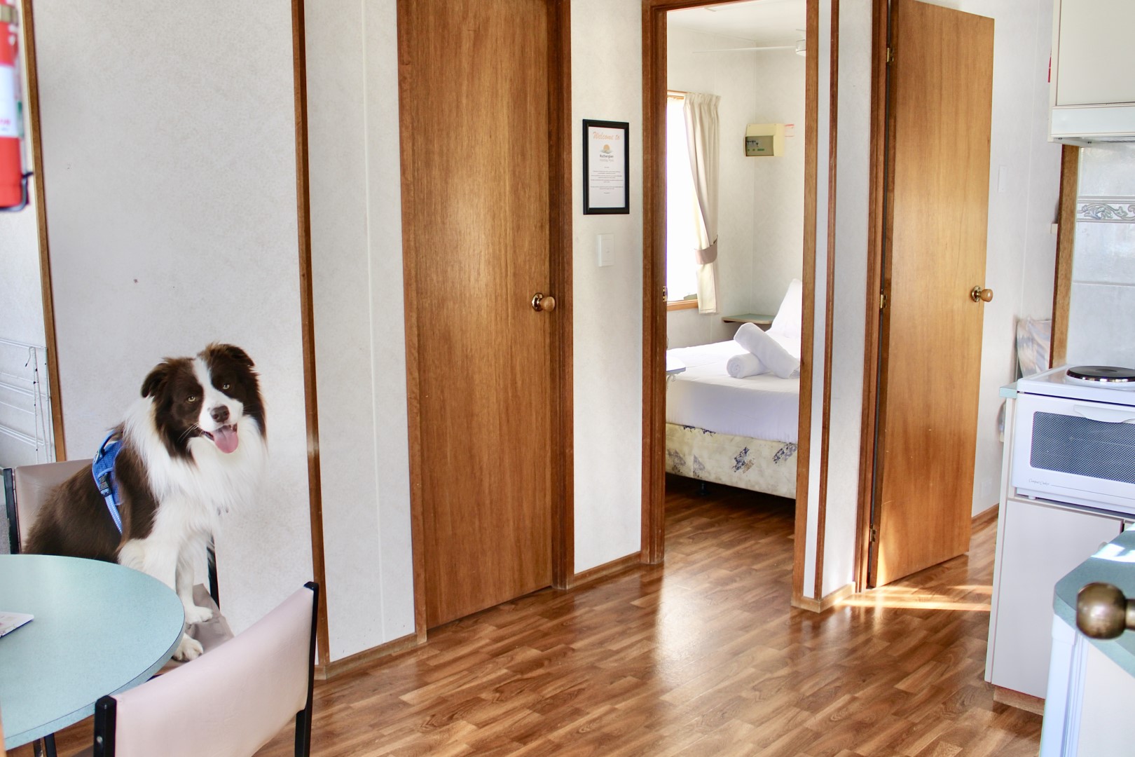 The Pet Friendly Cabin is spacious yet cosy, perfect for a relaxing getaway. The main bedroom features a queen bed, with all bedding and towels provided, along with a robe and ceiling fan for added comfort. The second bedroom includes a double base with a single bunk above, ideal for additional guests.