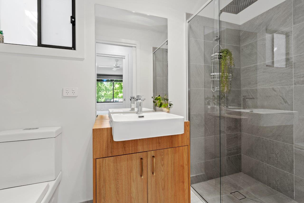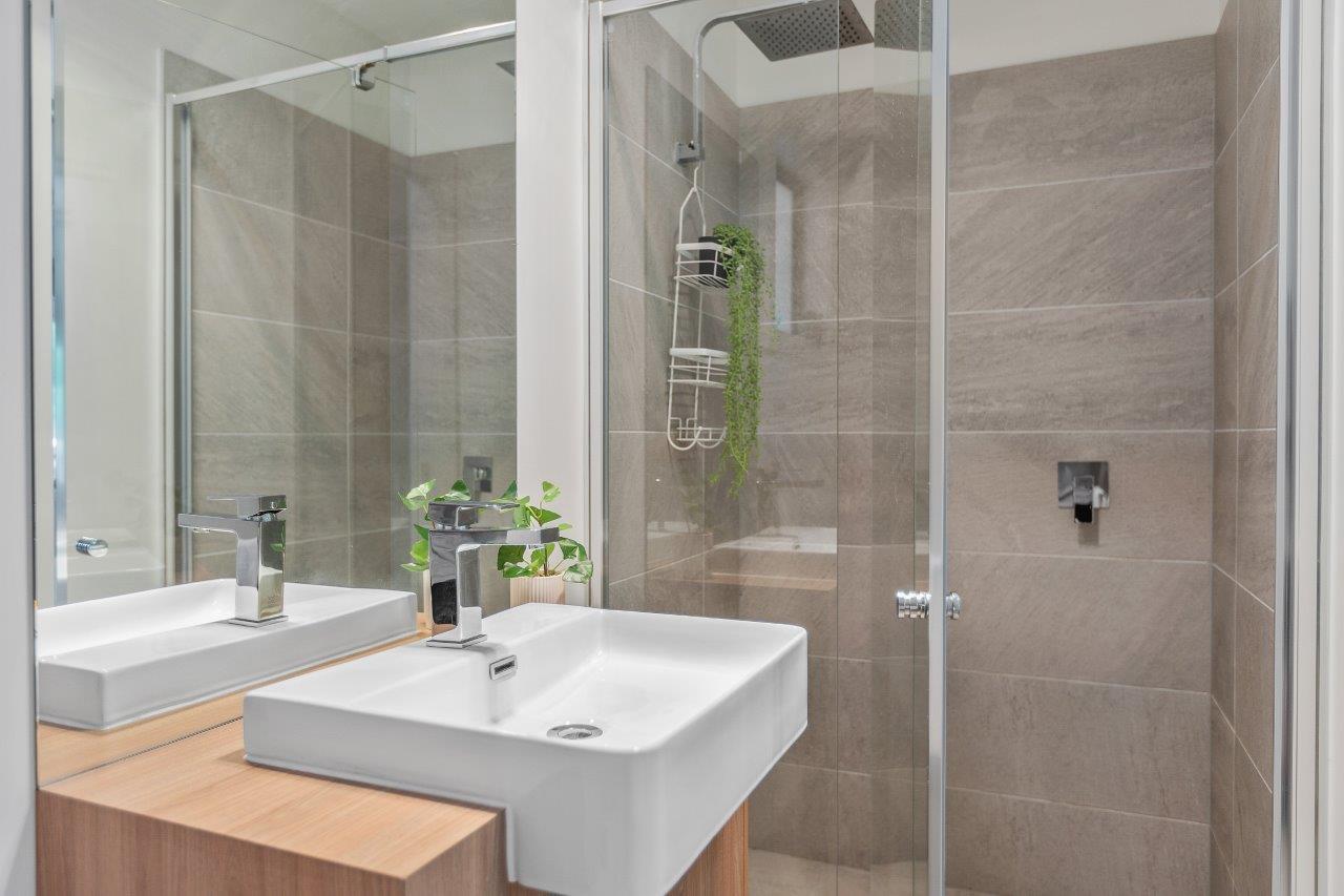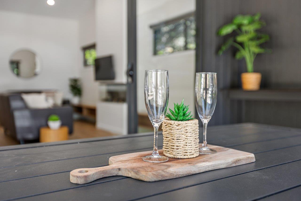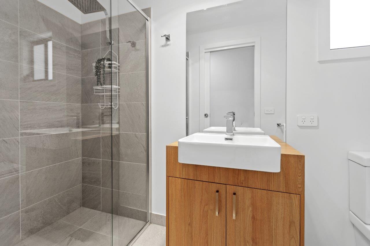 Our 2-bedroom villas offer modern furnishings and a smart layout. The main bedroom includes a queen bed and ensuite, while the second room has two single beds. Enjoy the spacious open-plan living and dining area, equipped with split-system cooling and heating, plus a full kitchen. Step outside to the lovely deck for alfresco dining.