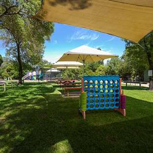 There is a large ball park area for outdoor games and picnics. Clean, modern amenities with a camp kitchen and BBQ area.