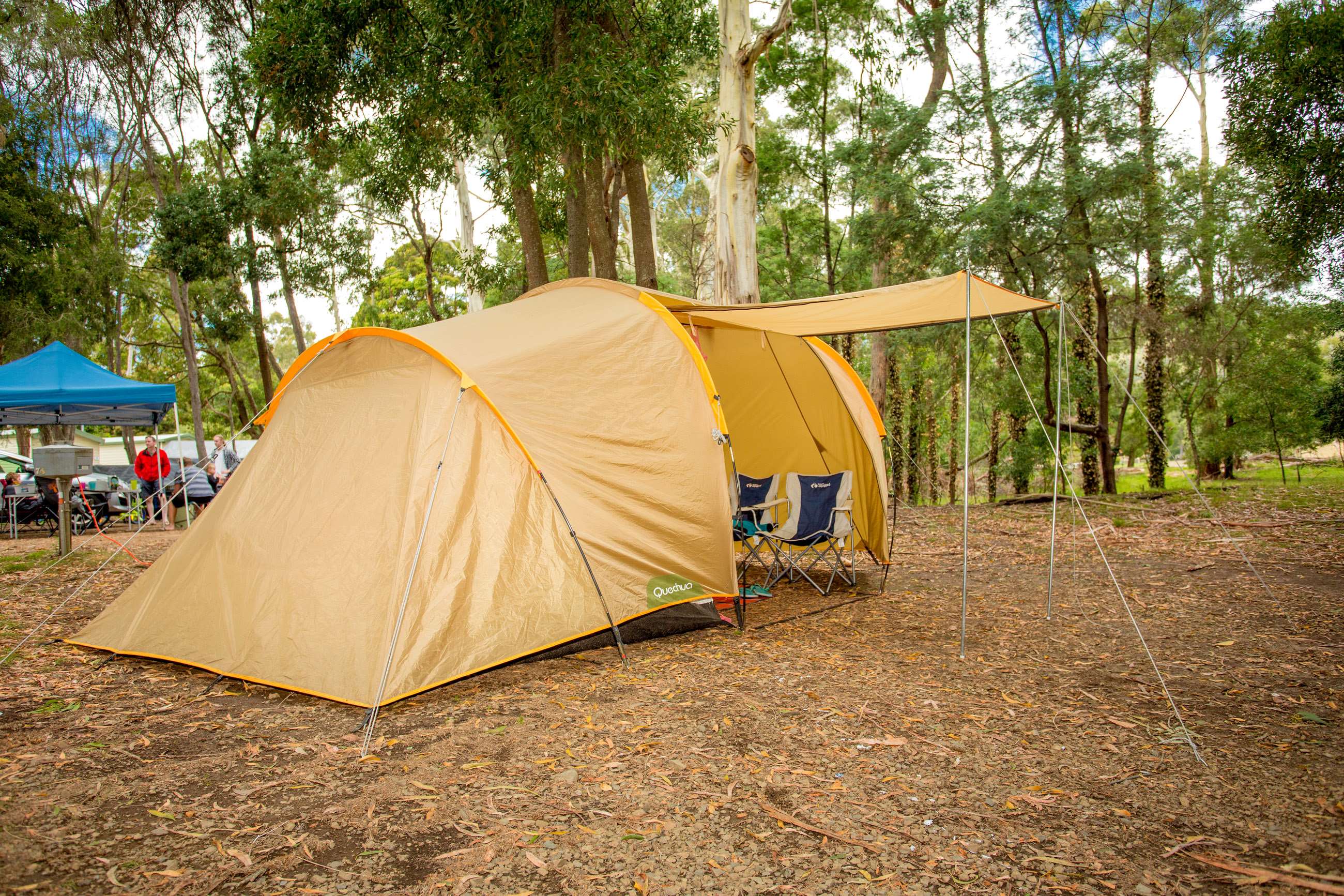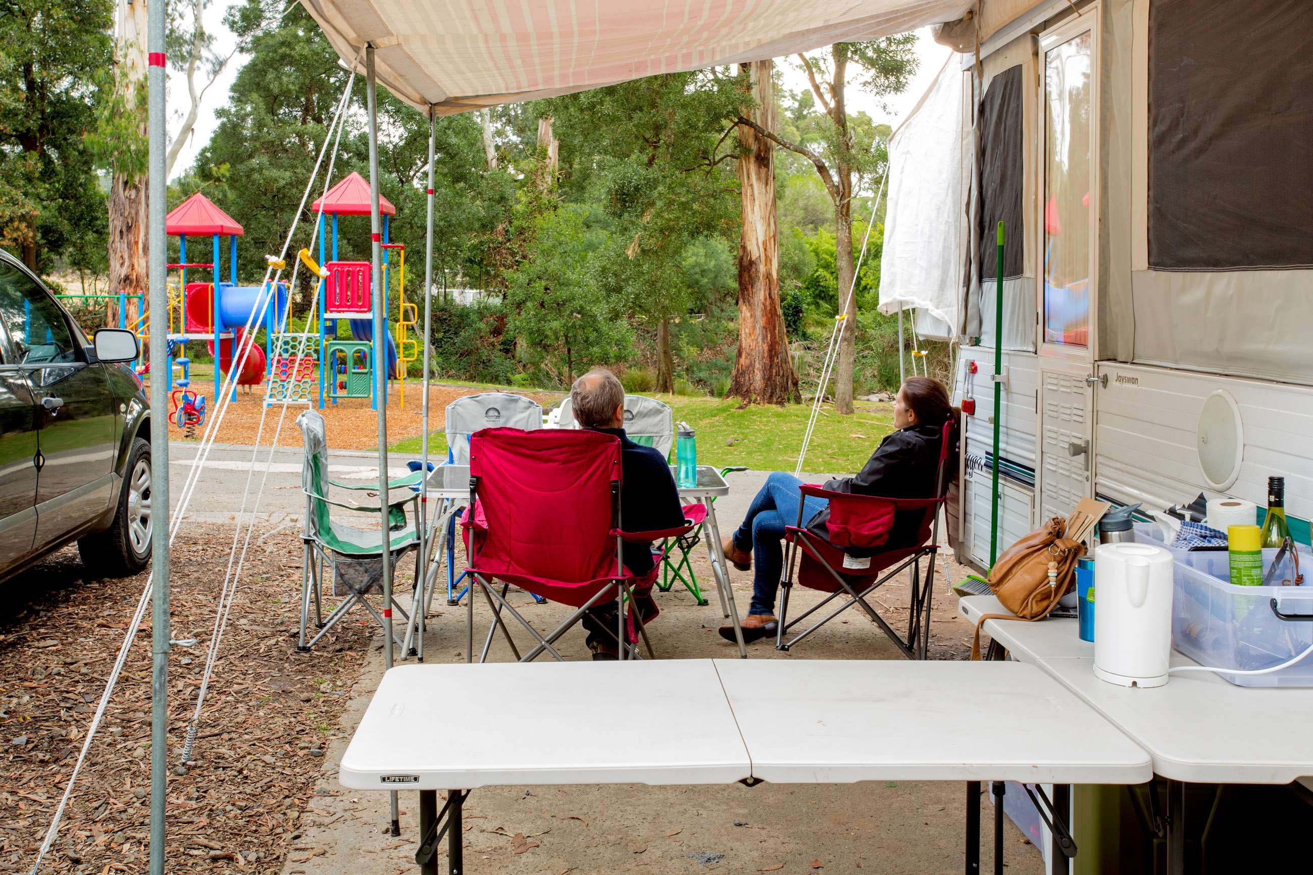 Powered tent and camper trailer sites come with onsite car parking. Some are next to the creek (creek sites have trees).