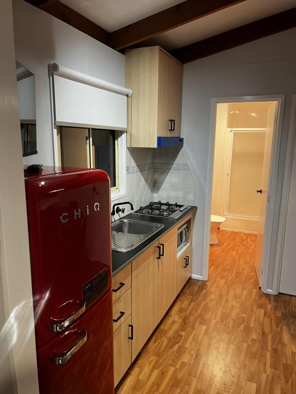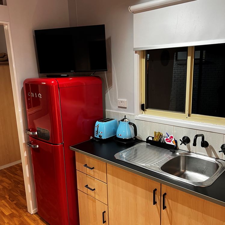 Offering a little extra comfort and space in a Retro inspired style, our Retro Cabins sleeps 6, with a double bed in the main bedroom and 2 x sets of bunks in the second bedroom. These cabins feature a kitchenette, living and dining space and verandah.