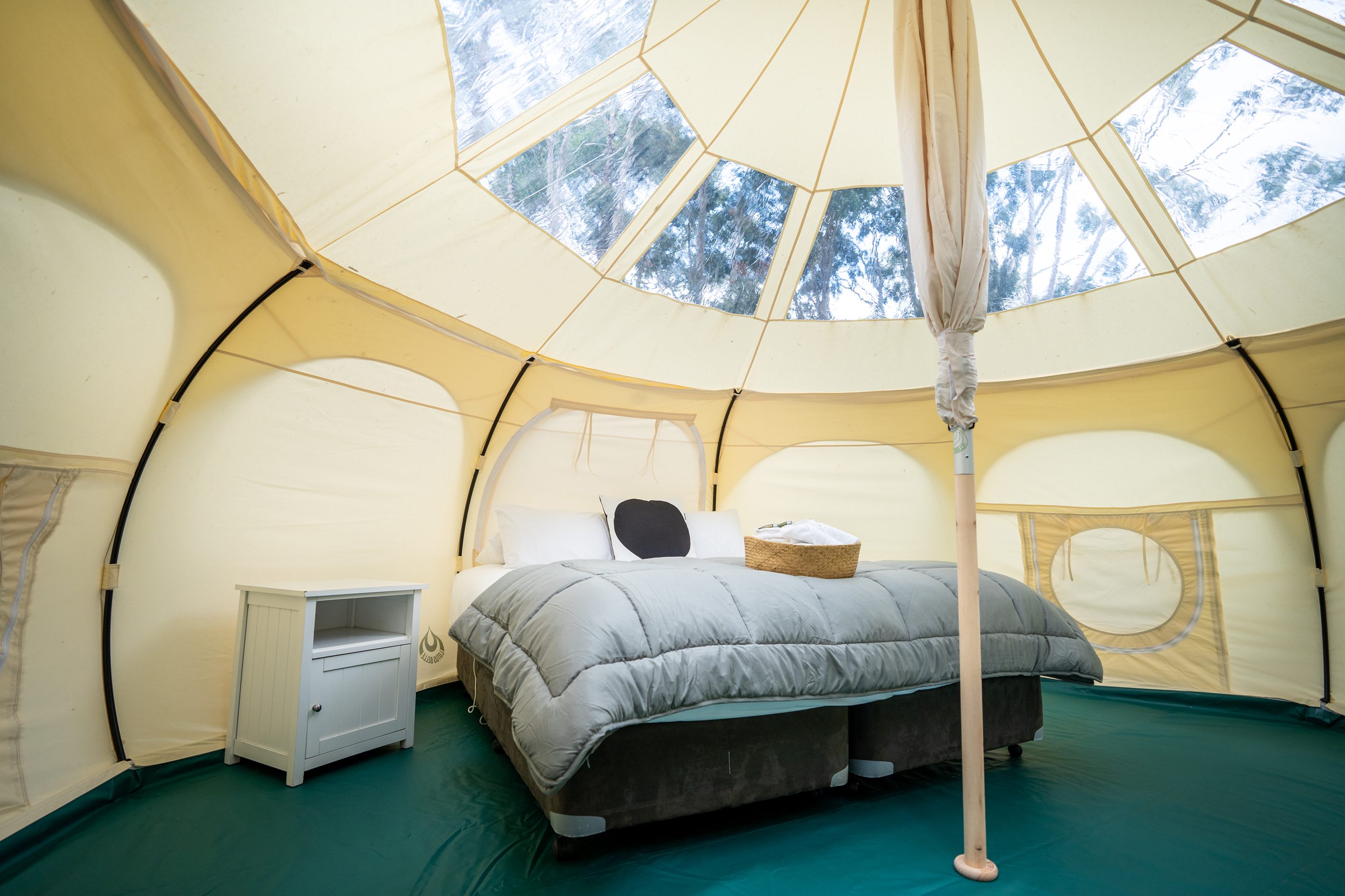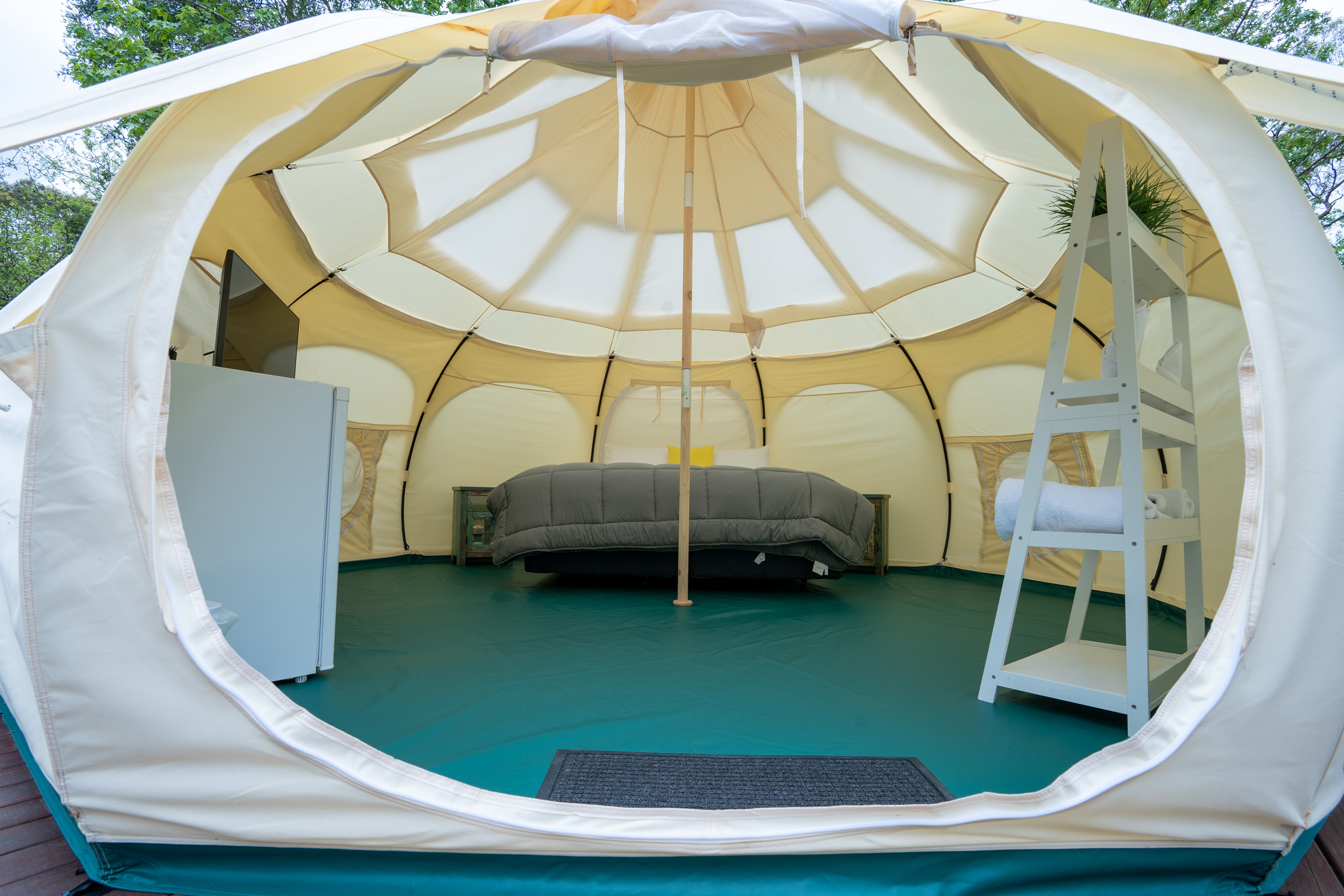 At Park Lane, we define Glamping as the rest and relaxation in the great outdoors without sacrificing all the creature comforts of home! Imagine no hassles of setting up or packing away. Our luxurious belle tents come fully furnished and include an outdoor setting.