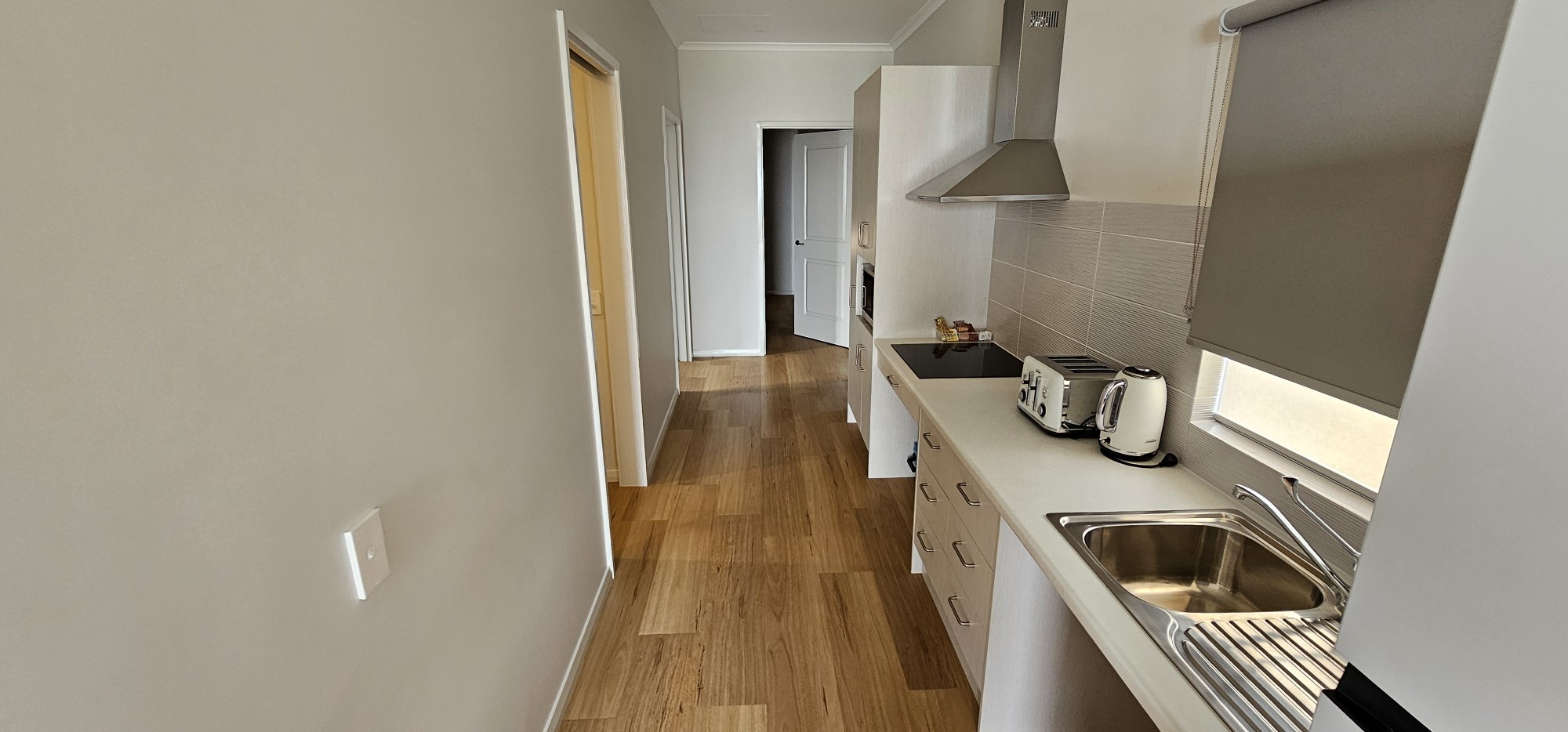 Fully equipped kitchen with an electric stovetop, fridge, microwave. Large 55inch smart TV. Modern bathroom with an easy access sink and tap, large walk-in shower with handrails and shower seat and toilet with back rest and handrails. Complimentary tea and coffee.