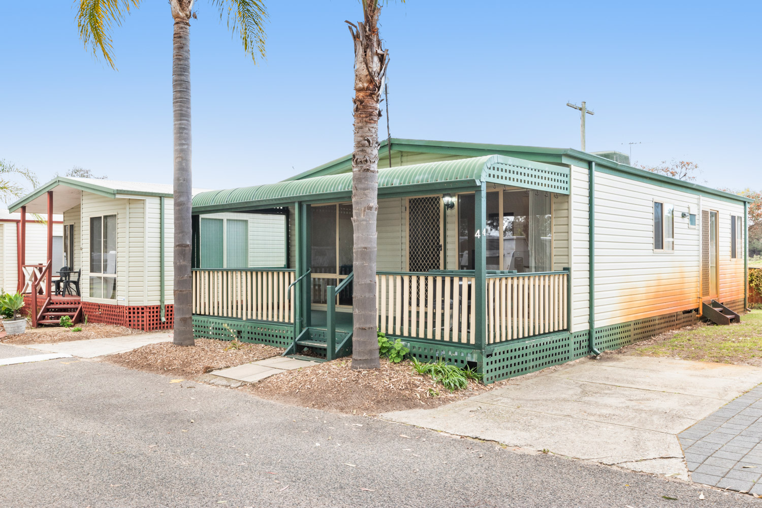 Our 2 bedroom Park Homes are self contained with 1 x queen bedroom and 1 x single bunk bedroom and lounge room with double sofa bed, sleeps maximum of 6 people including children. Bathroom with shower, toilet and basin, full kitchen facilities with fridge, stove with oven, microwave all cooking utensils etc, lounge room with TV and DVD, dining room, air conditioning, heating. All linen provided.