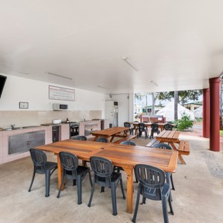 All caravanners and campers will love our deluxe outdoor kitchen and large communal dining area with tables and seating. We offer modern amenities, a guest laundry and free Wi-Fi.