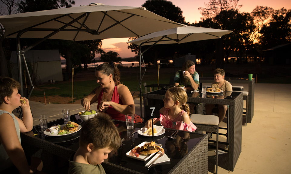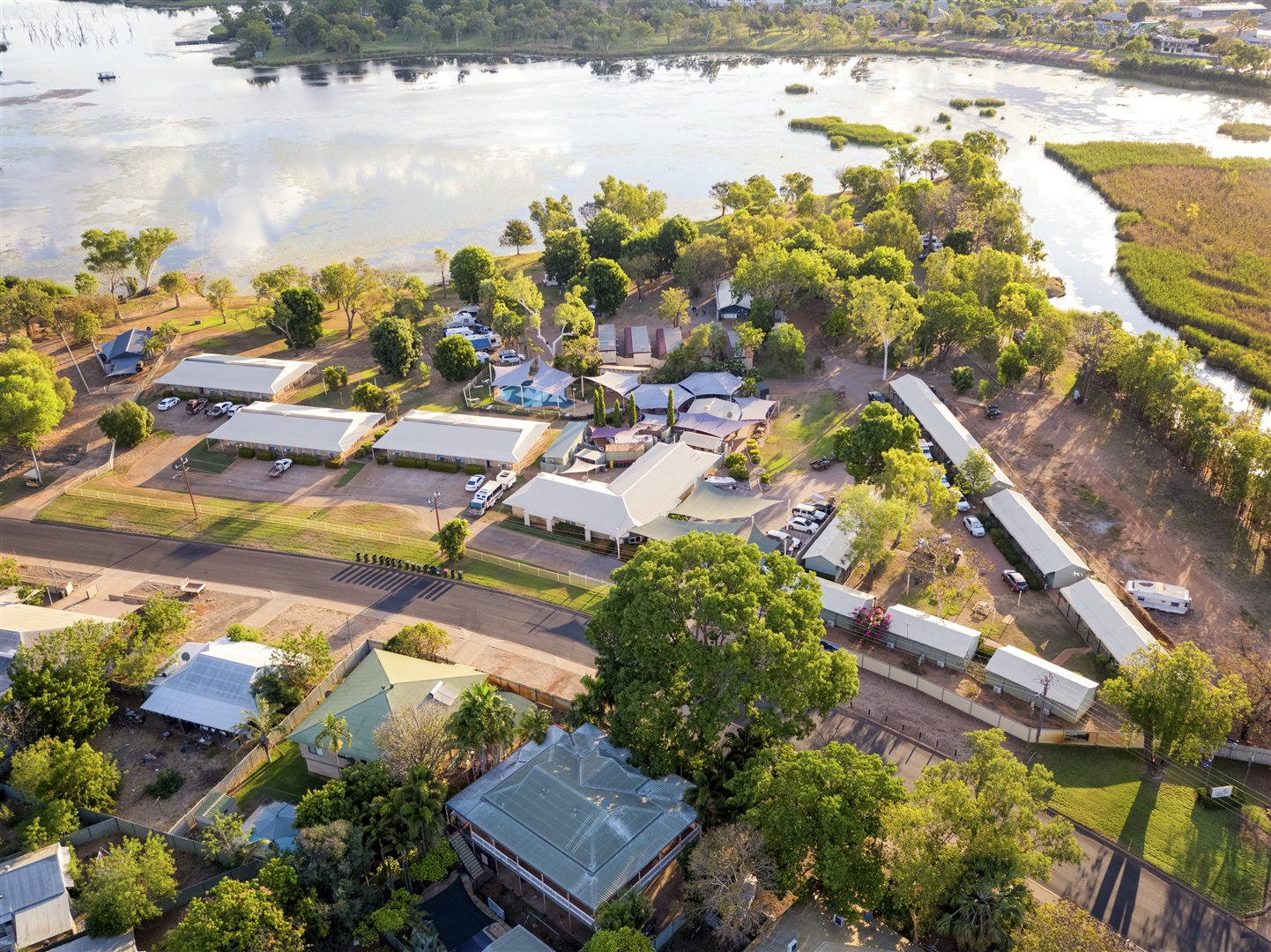 Aboriginal owned and operated, Lily Lagoon Resort welcomes all travellers. Located on the banks of the picturesque Lily Creek Lagoon, this Kununurra caravan park is perfectly placed within one of the most spectacular locations in Western Australia’s Kimberley Region, Kununurra. Dine with us at our outback style restaurant, café by the pool, or utilise our outdoor seating areas and BBQ facilities by the lagoon. In the lagoon located at the back of the property we have freshwater crocodiles that you will see if you’re quiet and patient. Stay under the stars in our campground, or in comfortable accommodation. Relax around a campfire, share stories with other guests, or hear tales from our Traditional Owners of unique Kimberley experiences. Located just 2.5km from the town centre, Lily Lagoon Resort is a 15-minute walk from town, and only a short 5-minute drive from Kununurra airport. Lily Lagoon Resort is an ideal place to stay to soak up the incredible beauty of one of the earth’s oldest landscapes. Whether you’re travelling for business, pleasure, or pursuing adventures across the Kimberley, you’ll find the perfect retreat at Lily Lagoon Resort. Your perfect place to stay is waiting for you.