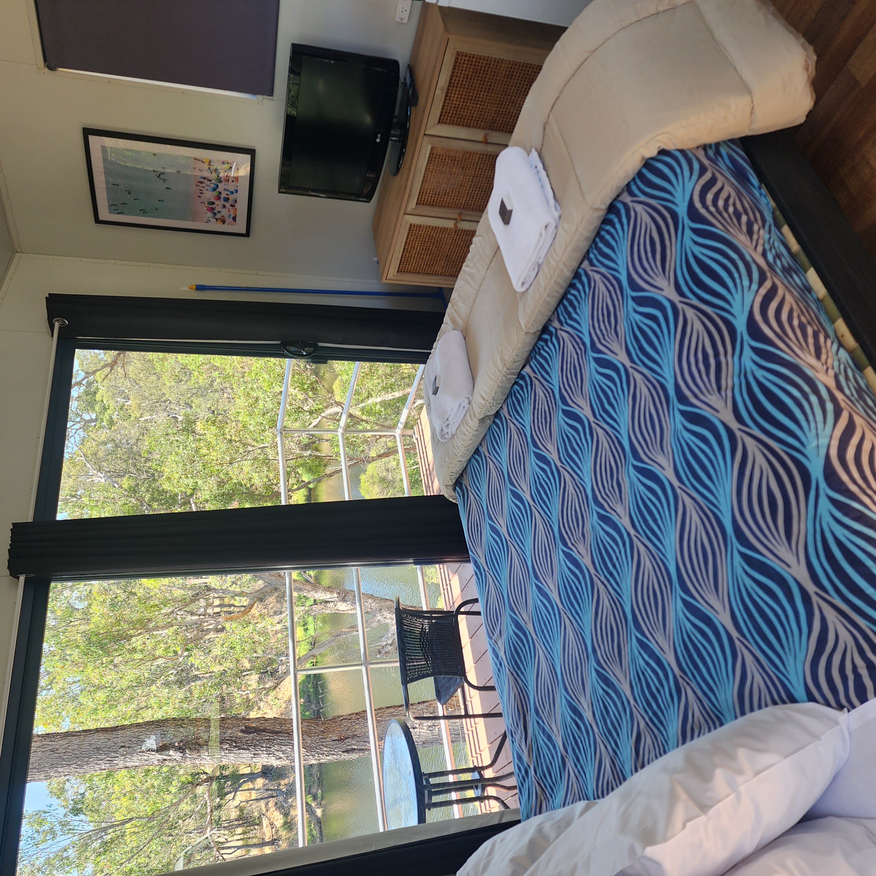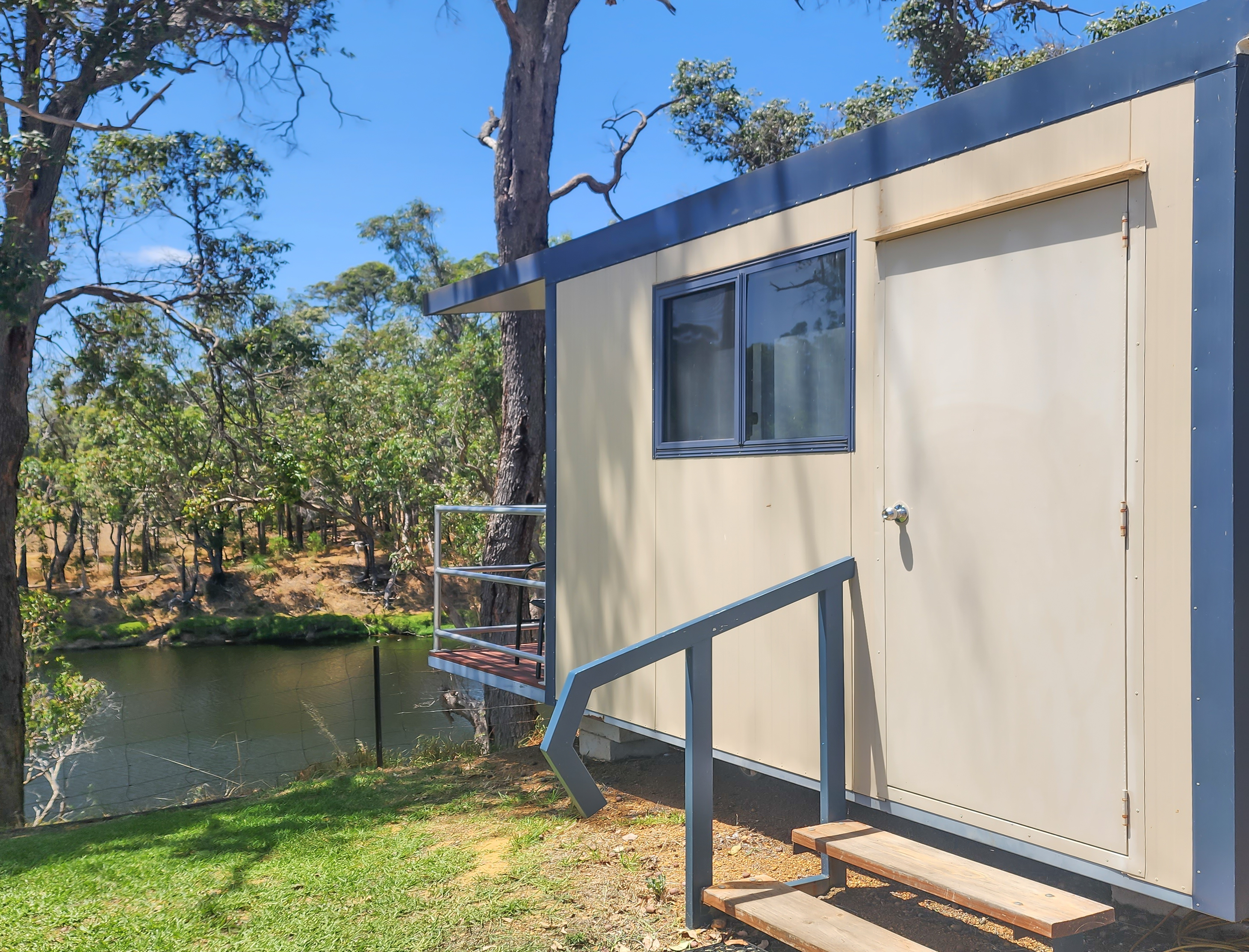 A cosy one room cabin on the riverbank. Enjoy your own shaded verandah offering breathtaking views of the Blackwood River. Unwind as you watch the world go by, take the time to spot delightful wrens flitting about, and fully immerse yourself in the beauty of nature all around you.