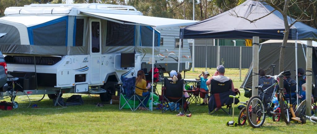 We have 85 powered camping sites, varying in size from 10m x 10m through to 13m x 10m. They have plenty of room for the folks van plus a tent if the kids want to sleep out under the stars. These sites all have power and water on site.