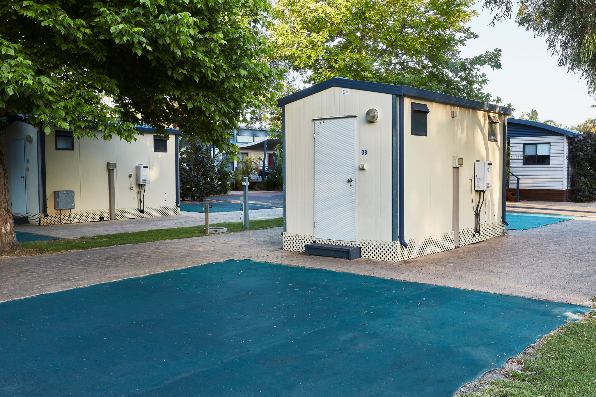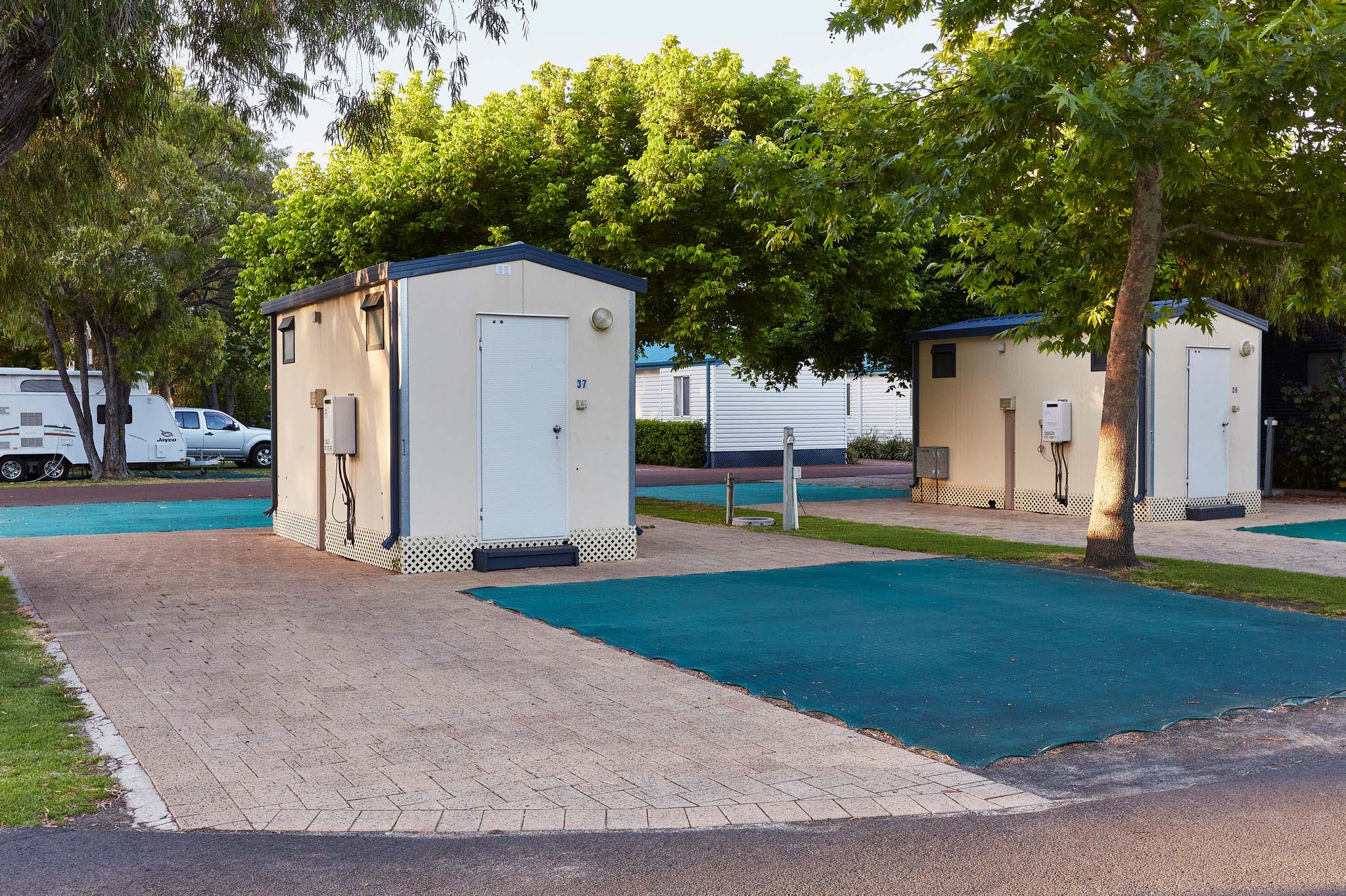 The ensuite bathroom includes a toilet, shower and vanity. The sites are conveniently located close to the camp kitchen and other facilities.