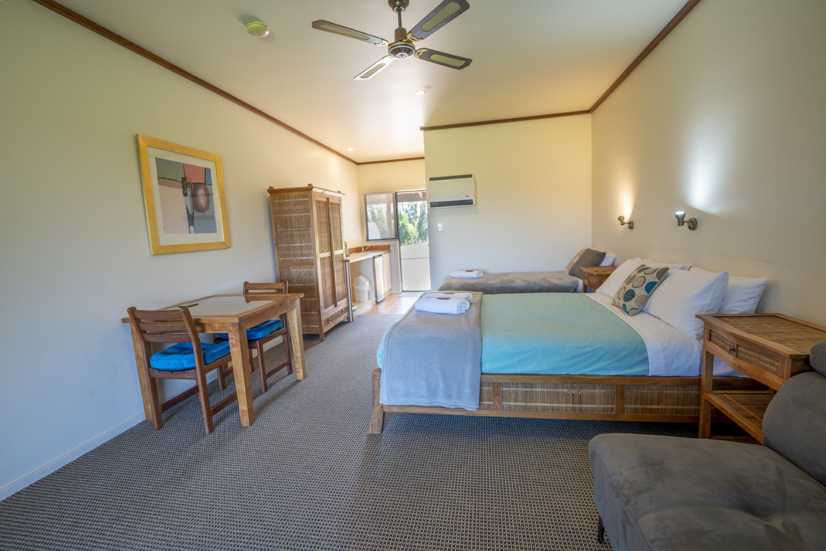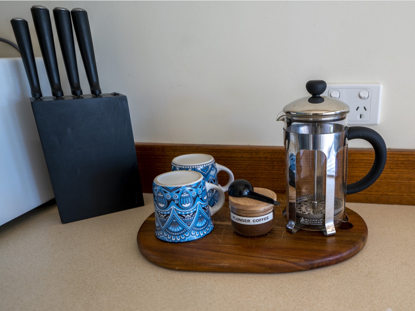 Our King Studio Suites are the perfect spot to unwind while soaking in spectacular sunset views of Mount Shadforth from your private patio. You'll find handy kitchen facilities including a small hotplate, tea and coffee making essentials, a bar fridge, toaster, and all the crockery, cutlery, and glassware you need. Ideal for up to 2 guests!