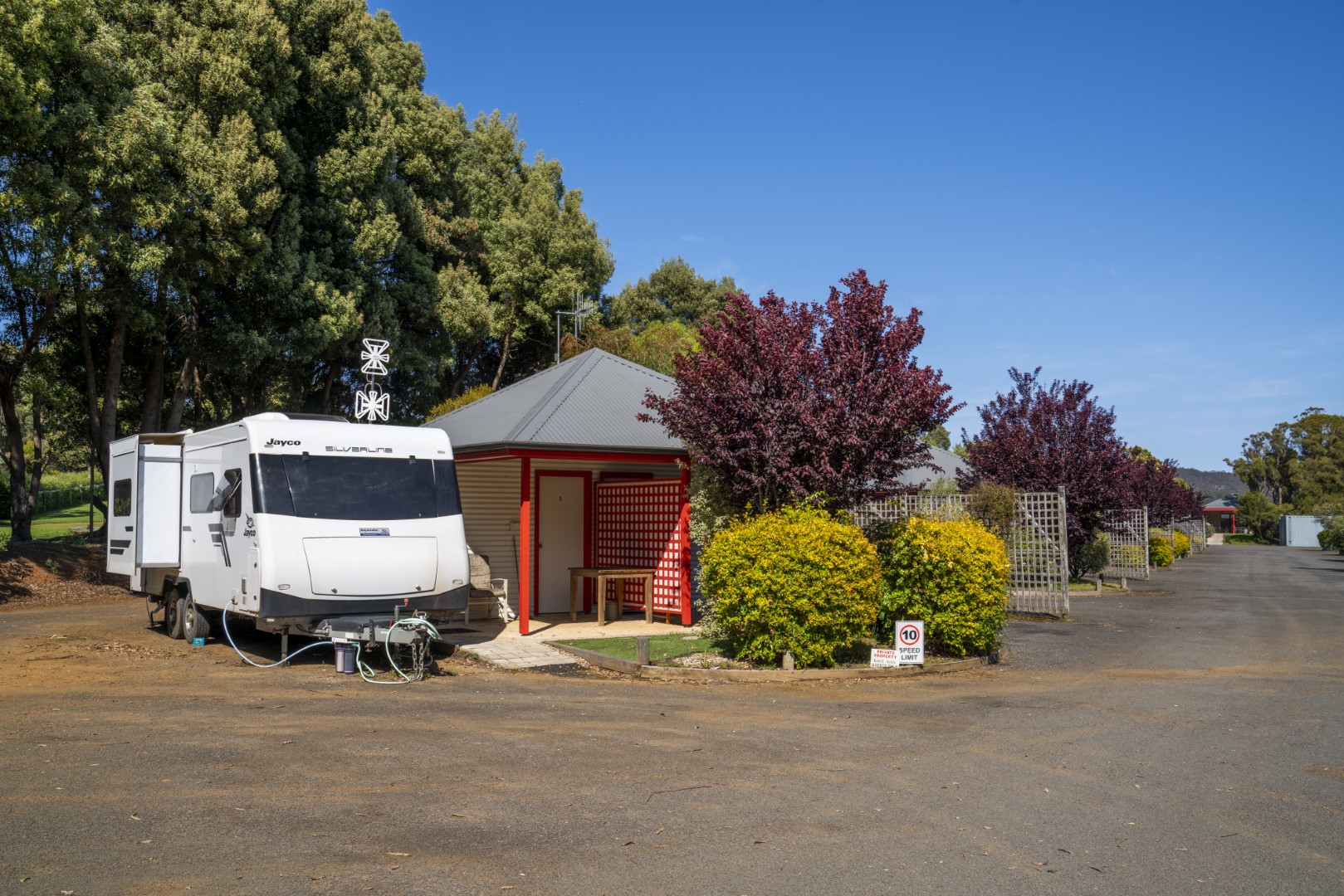 Enjoy a powered site with your own private ensuite and a covered paved area! The ensuite features an accessible toilet, shower, and a spacious sink for your convenience.