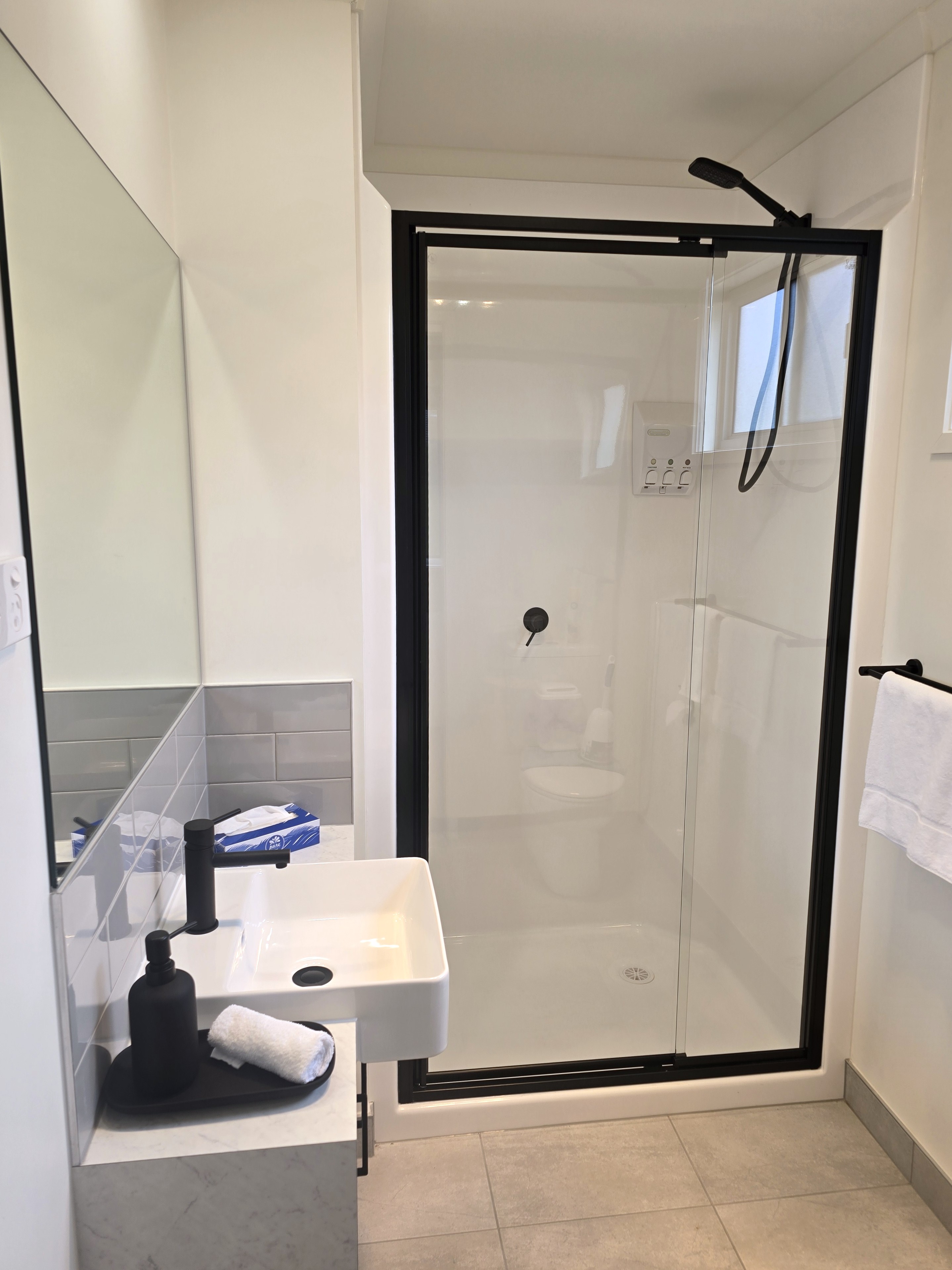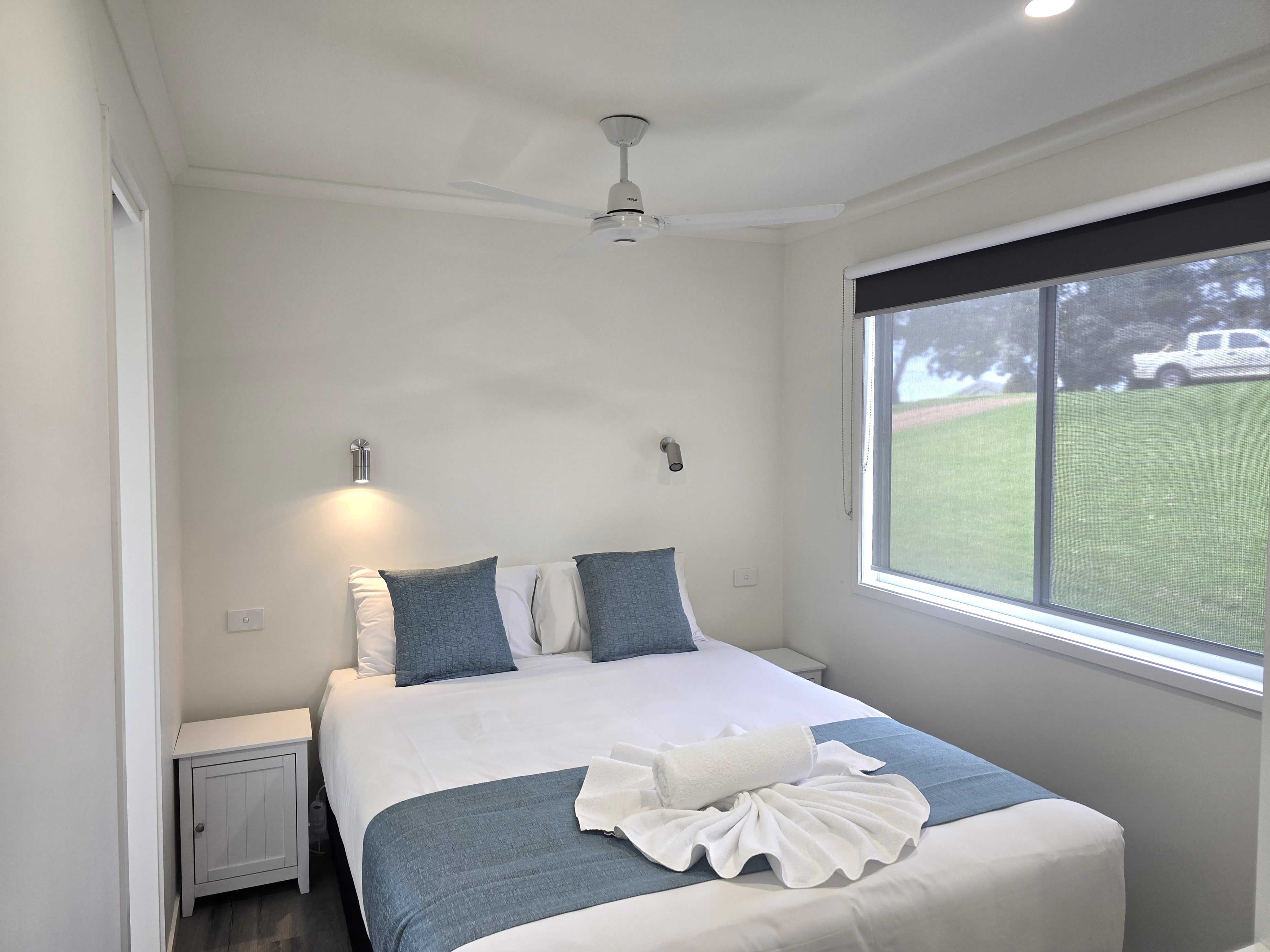 Spacious, modern three bedroom cabins with a queen bed in the first and second bedrooms and L-shaped bunk beds in the third bedroom, to sleep a maximum of 8 people.