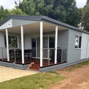 Our two and three bedroom cabins are new additions to the park! Our two bedroom cabins arrived December 2024, and our three bedroom cabins in November 2025! These spacious new cabins are perfect for families or couples travelling together, with the two bedroom cabins sleeping up to six people and our three bedroom cabins sleeping up to eight. Each cabin has full kitchen facilities and spacious deck with a BBQ and outdoor furniture, making them a great base from which to enjoy the park's tranquility while being close to town and the many local attractions.