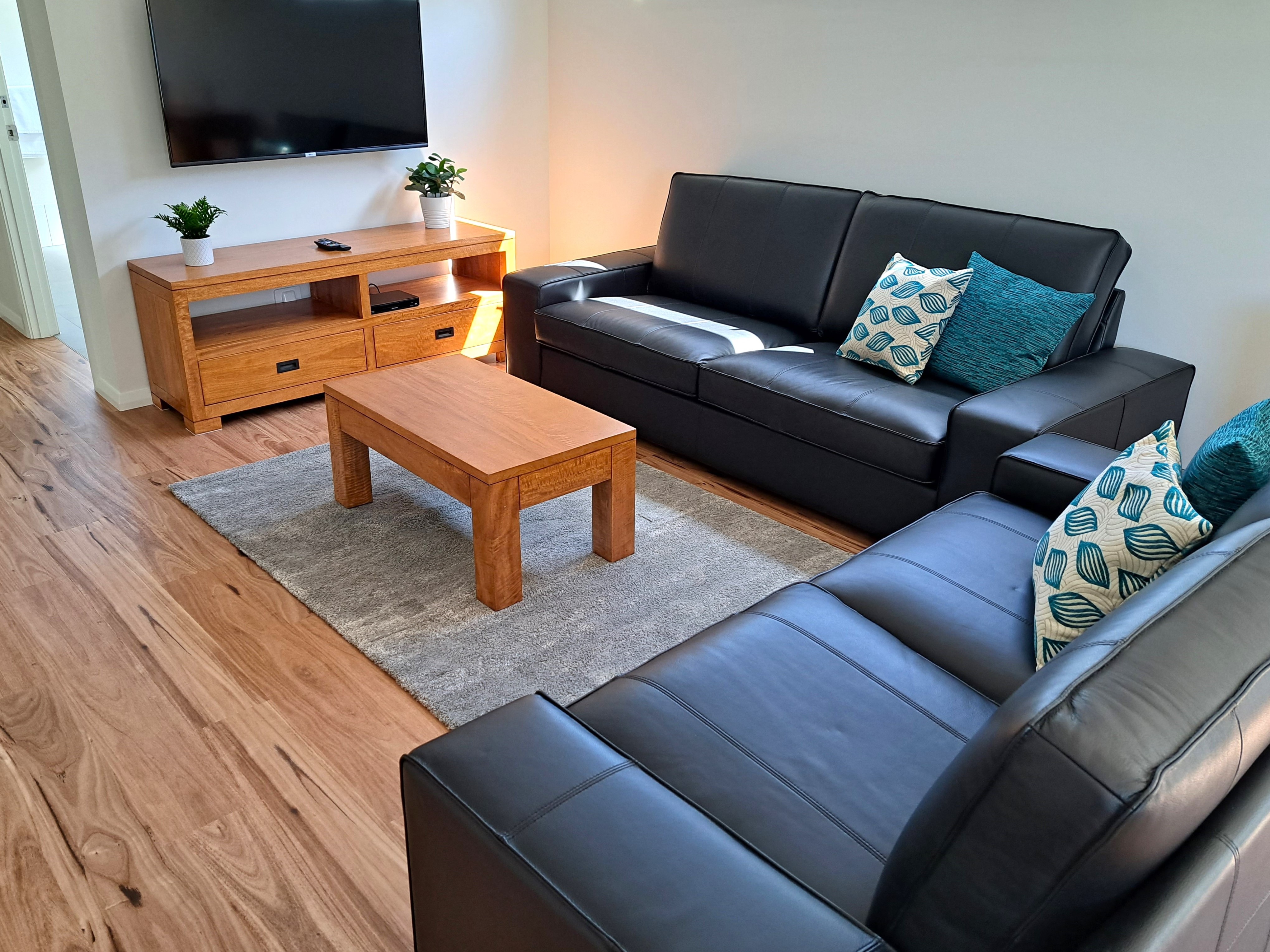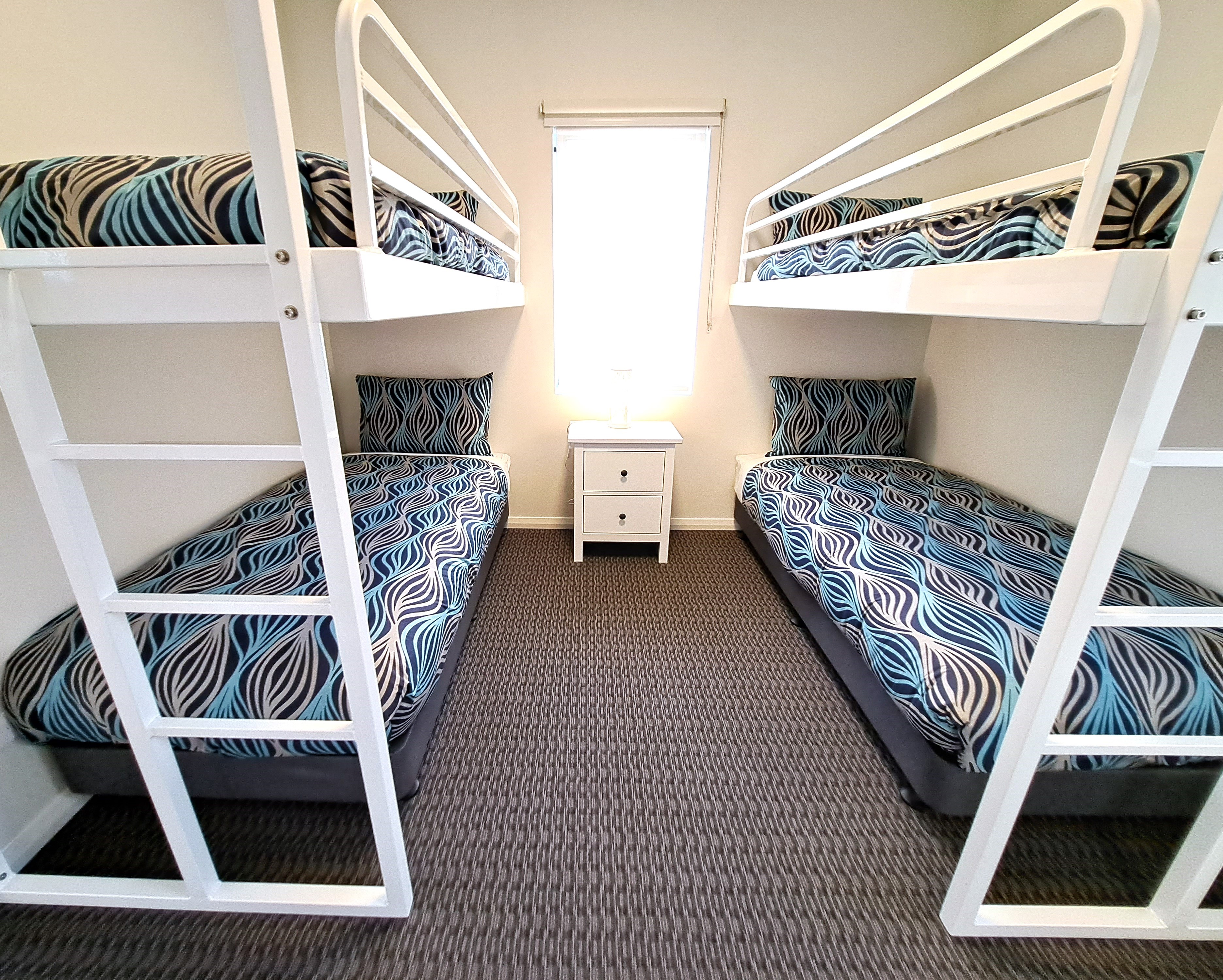 Enjoy the spacious open-plan living and kitchen area with a side-opening oven, full-size fridge, microwave, and a table for 6. Next to the comfy lounge with TV/DVD, reverse cycle air-conditioning keeps you comfortable year-round. The bedrooms include a king-size bed in the master and two sets of bunk beds in the second bedroom, accommodating up to 6 guests.