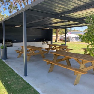Mandurah Coastal Holiday Park amenities include undercover BBQ area with ample seating; spacious camp kitchen with chef’s oven; playground, open space and sandpit for the kids, fish bay with crab cookers, laundry facilities, a dump point and renovated toilet and shower blocks.