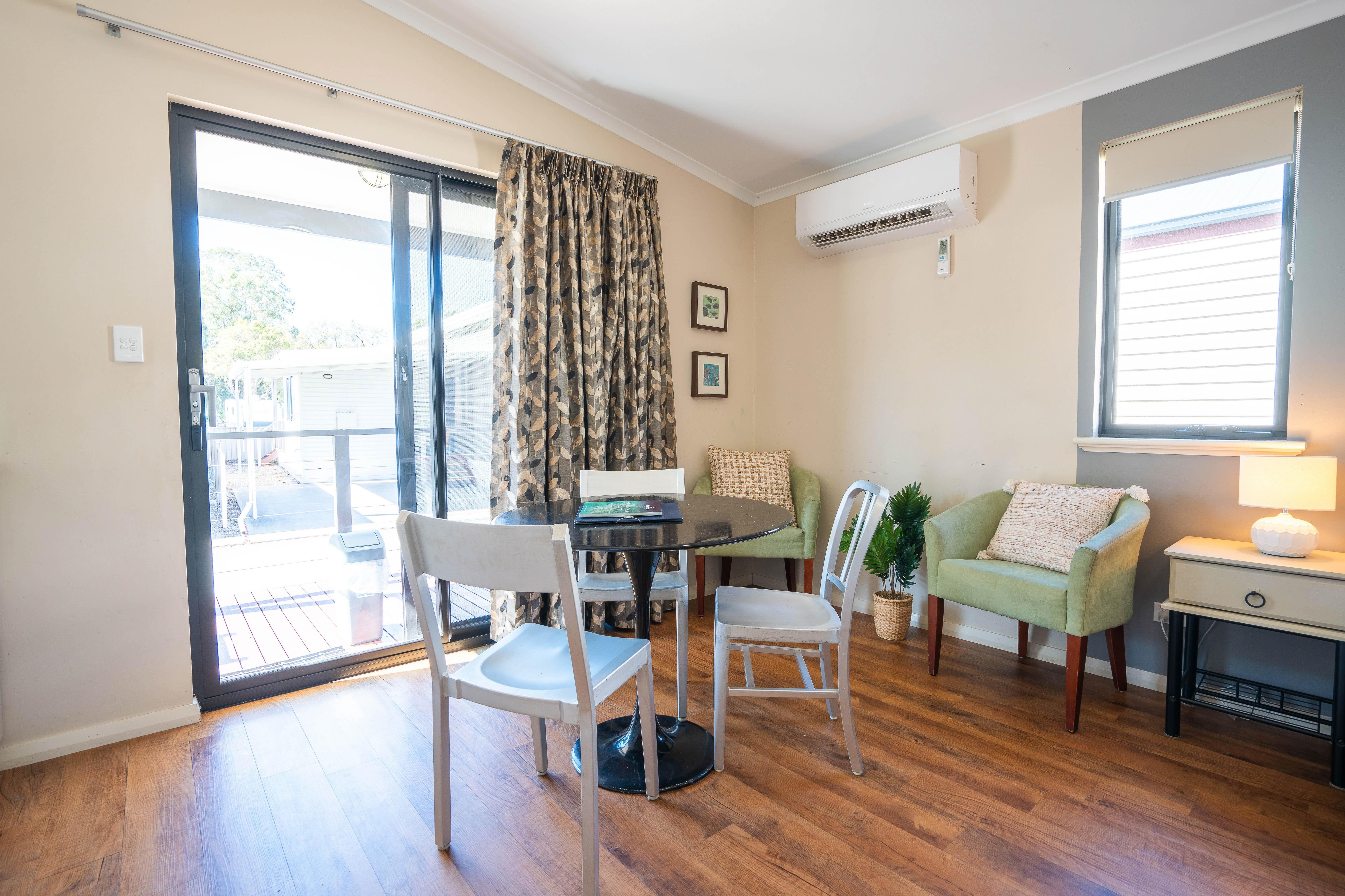 This lovely self-contained cabin offers modern comforts in a 4-star setting. It has a queen bed in the open living area and a double bed in a separate bedroom. Enjoy a kitchenette with a microwave and bar fridge, a TV/DVD, reverse cycle air-conditioning, a spacious ensuite, and an undercover veranda with decking. All linen is provided for your convenience.
