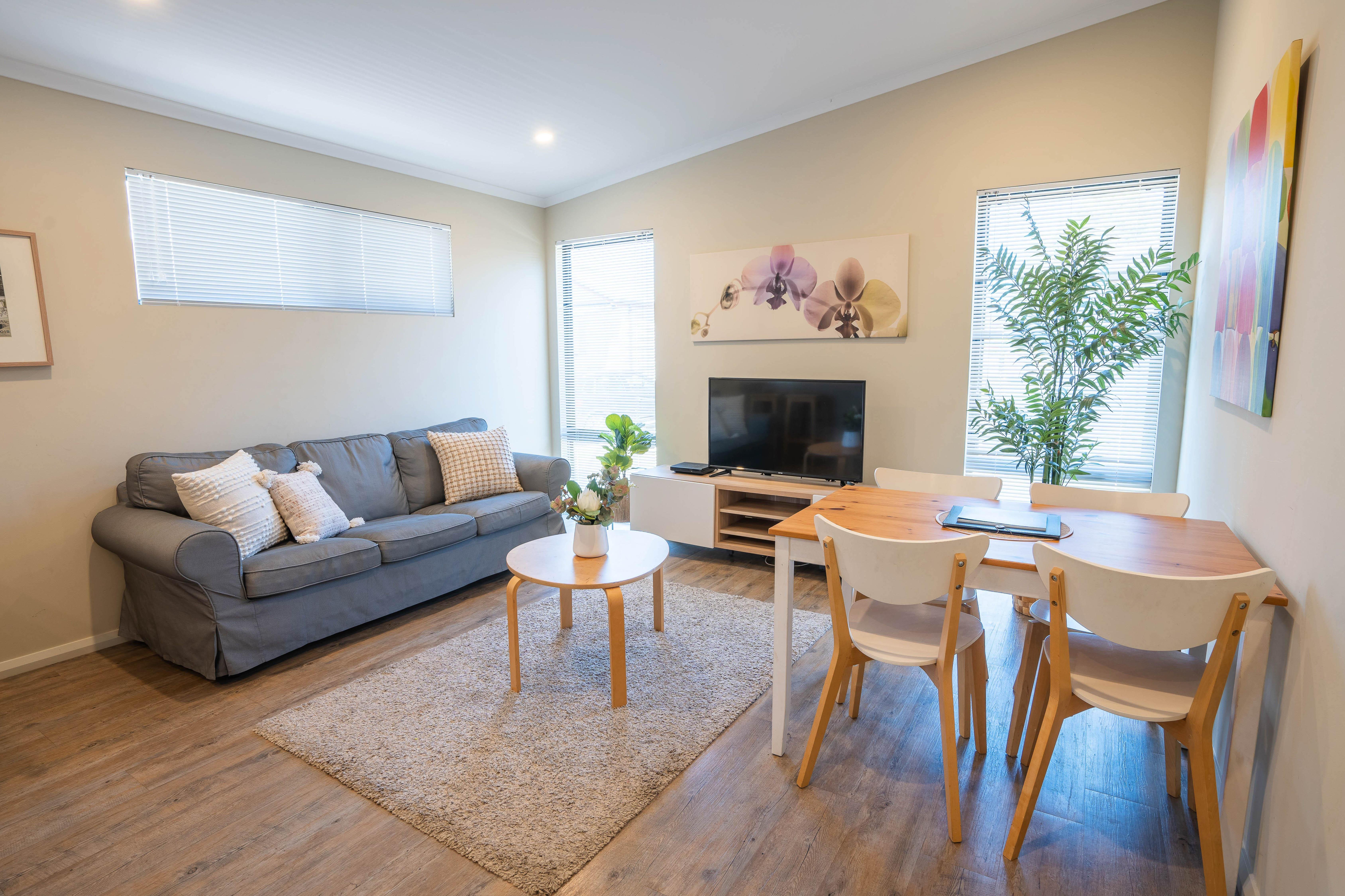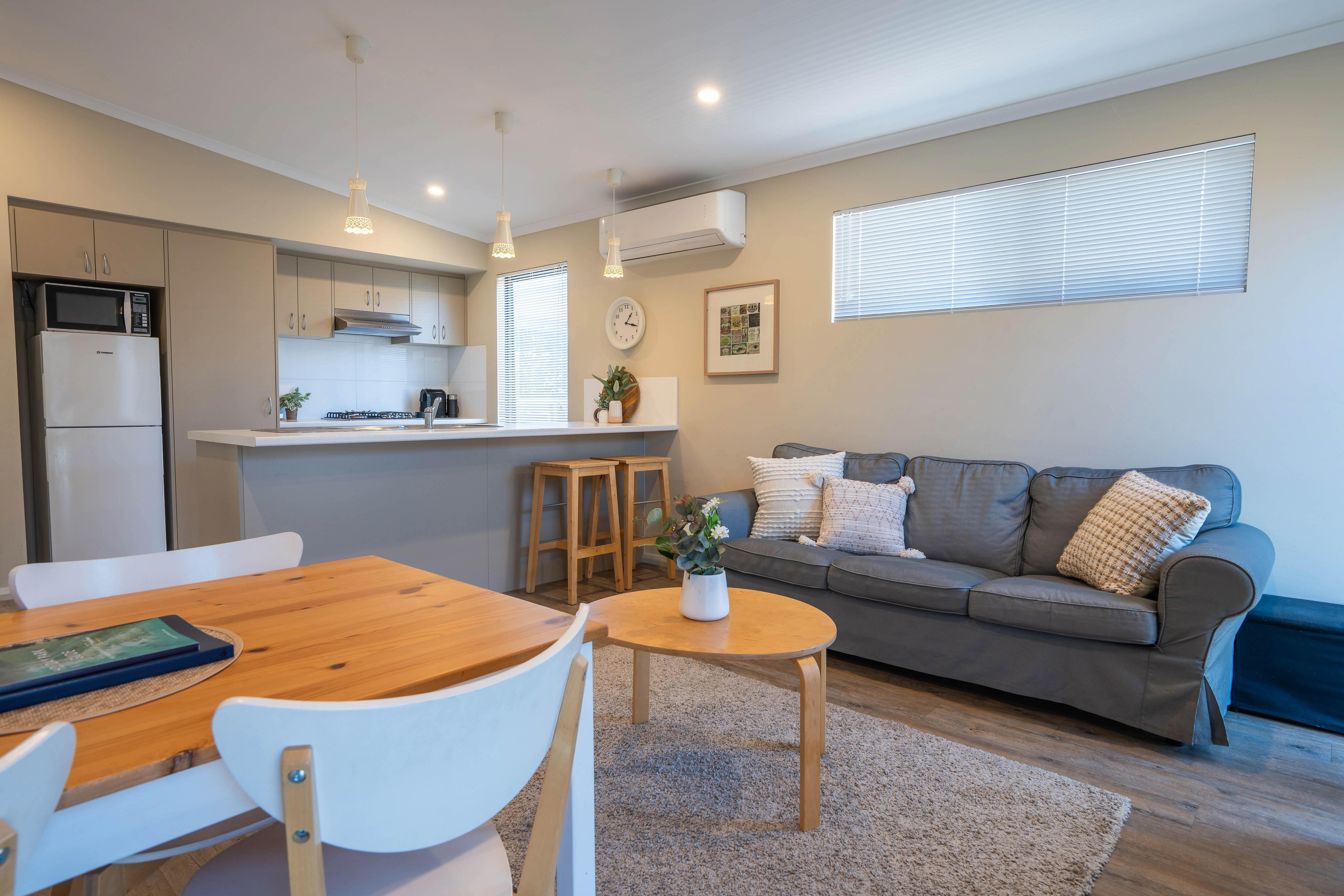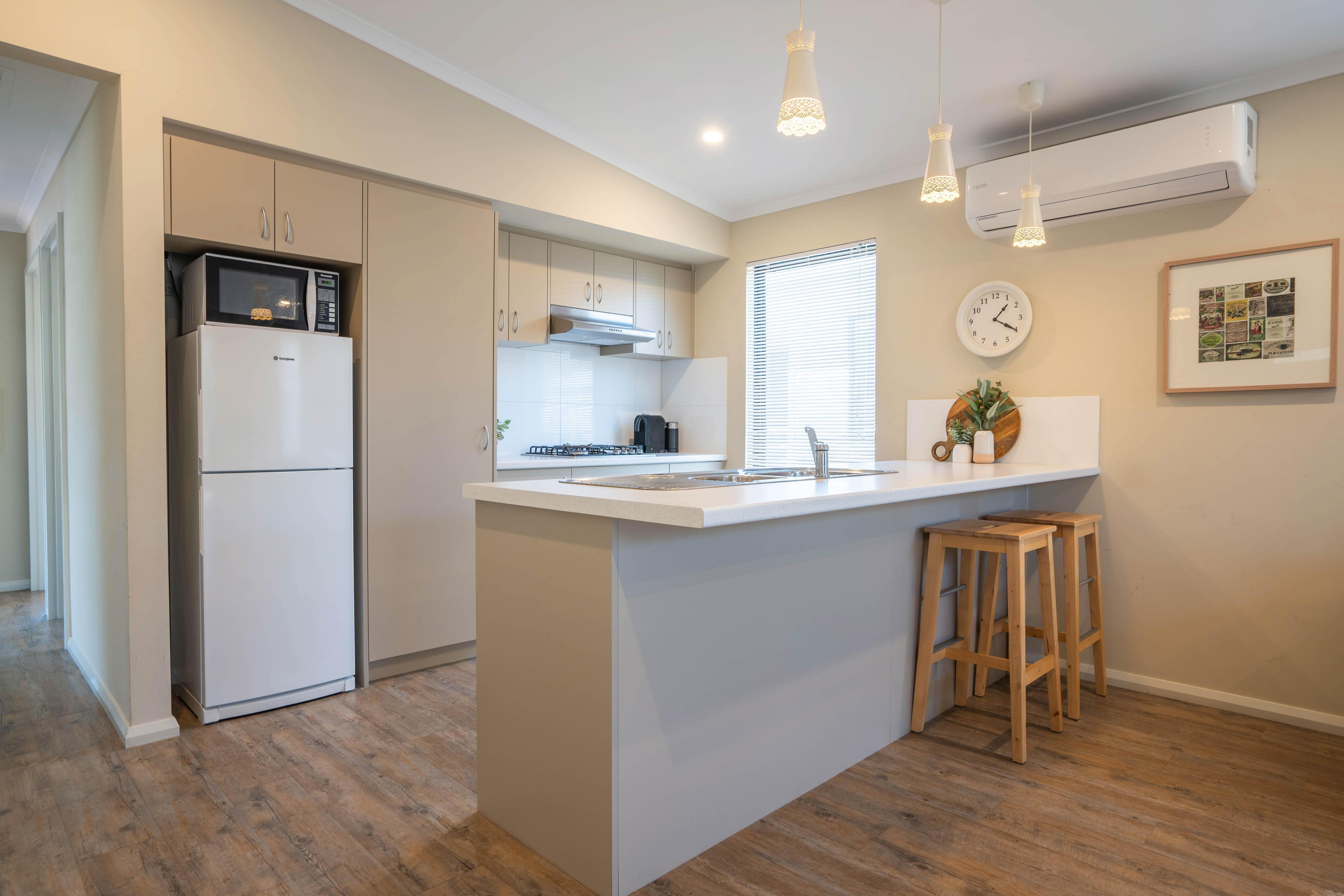 This modern and spacious Two Bedroom Holiday Home offers comfort and convenience. The main bedroom has a queen bed, while the second bedroom features a double bed. Enjoy a large semi-ensuite bathroom, a fully equipped kitchen with an oven, and an open-plan living area with a TV/DVD. Stay comfortable with reverse cycle air-conditioning. There's also a single carport out front and an undercover veranda with decking. All linen is provided.